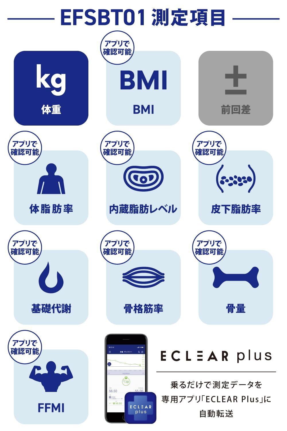 エレコム 体組成計 体重計 Bluetooth対応 100g単位 アプリ連携で9項目 【体重/BMI/体脂肪率/内臓脂肪レベル/基礎代謝/骨格筋率/骨量/皮下脂肪率/FFMI】 バックライト付き 自動ONOFF 登録人数制限なし ホワイト EFSBT01WH