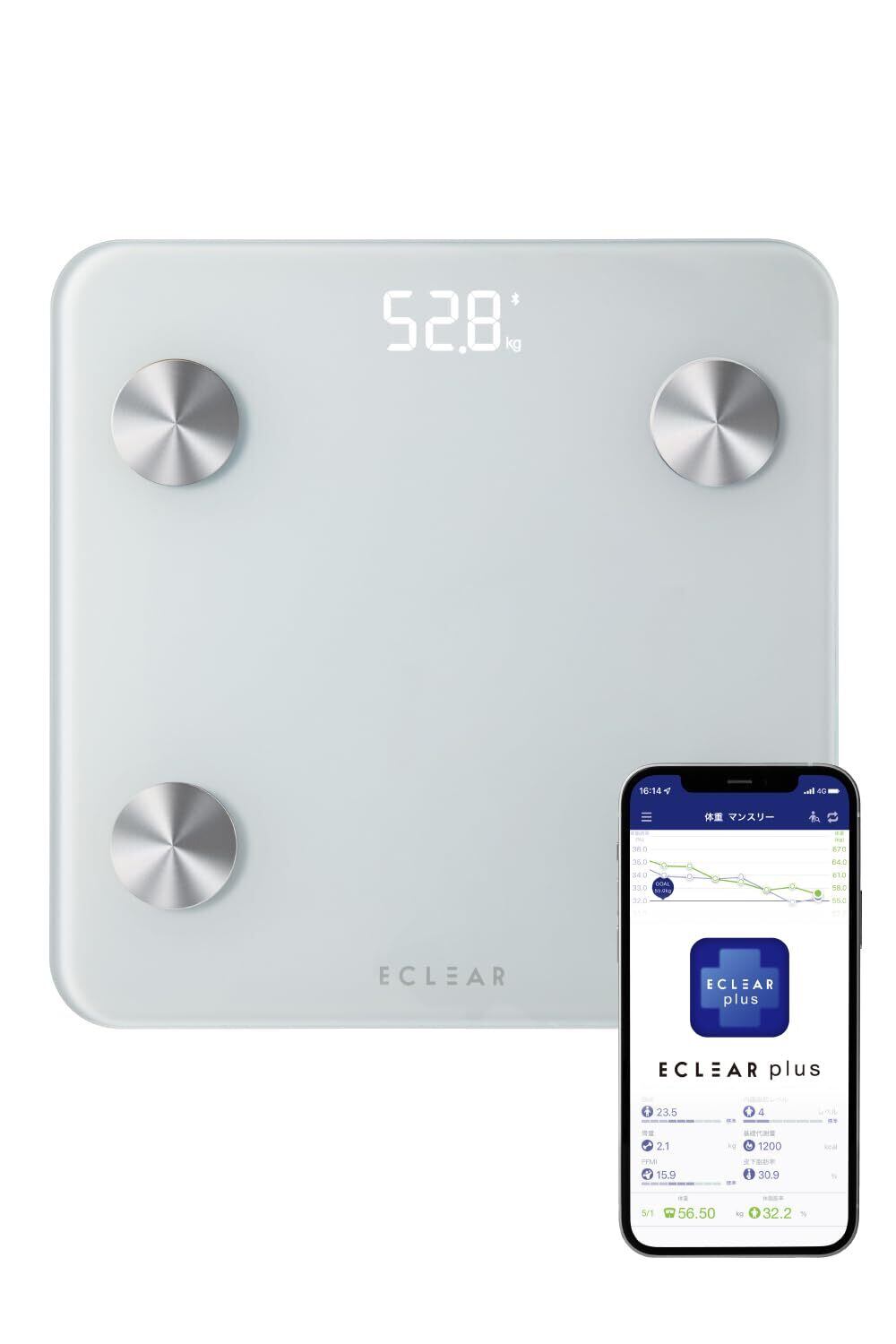 ■※本体の液晶画面には体重のみ表示されます。詳細データを閲覧する際はアプリをご利用ください。