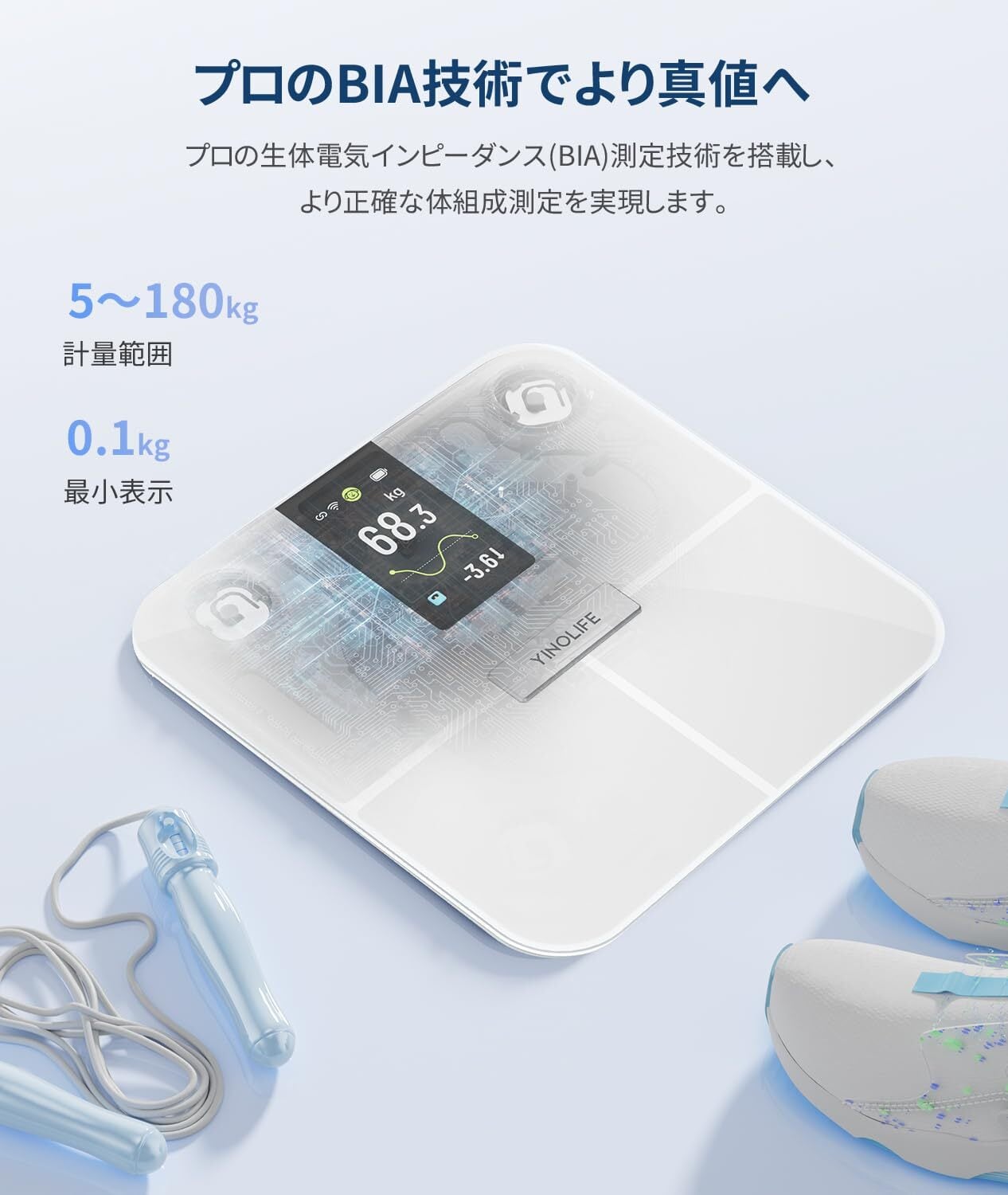 YINOLIFE 体重計 体組成計 FI2428LBF スマホ連動 体脂肪計 WiFi通信機能 ITO技術 4.3インチTFT大画面 結果直接に確認 Bluetooth5.0 データ自動転送 25項目測定 体重体組成計 高精度 180kgまで対応 weight scale 体脂肪率 BMI 筋肉量 基礎代謝 内臓脂肪 iOS/Android対応 無料アプリ健康管理 日本語取扱説明書