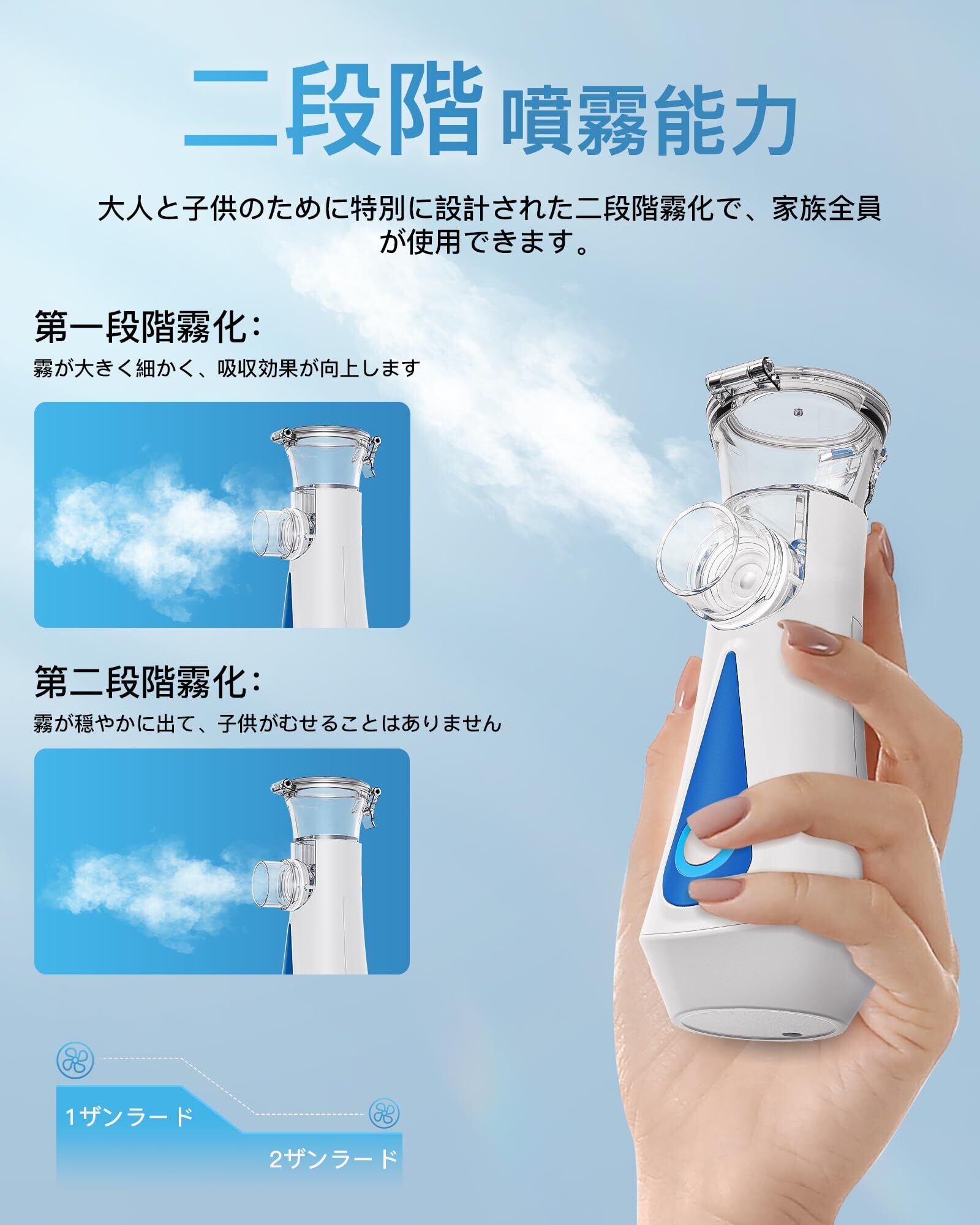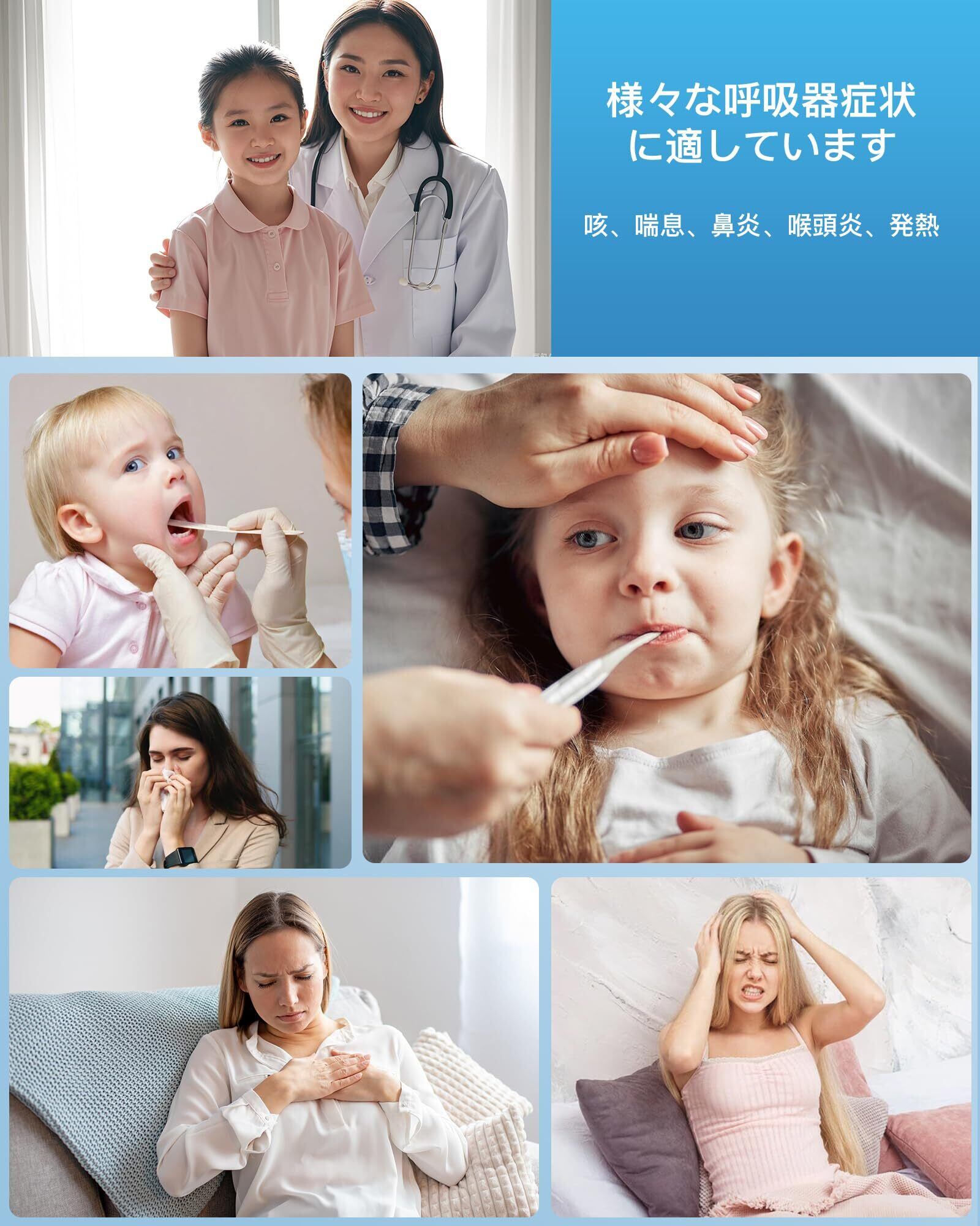 【高品質素材&幅広い用途】旧モデルとは異なり、マスクにはより高品質なTPU素材を採用しており、安全で快適に顔にフィットします。また、子供用マスク、成人用マスク、マウスピースなど、さまざまな付属品が含まれており、幅広い年齢層に対応しています。※【非対応溶液】× 精製水 × アロマオイルなどの高粘度液体。【使用可能な溶液】〇 生理食塩水 〇 薬液。