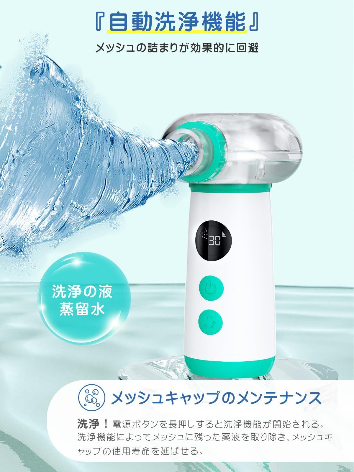 【自動洗浄機能でメッシュ詰まりを予防】使用後に薬液カップへ蒸留水を入れ、電源ボタンを長押しするだけで自動洗浄モードが起動。メッシュ部分に残った薬液を効果的に洗い流し、詰まりを防止します。清潔な状態を長期間維持でき、いつでも安定した噴霧性能を発揮します。