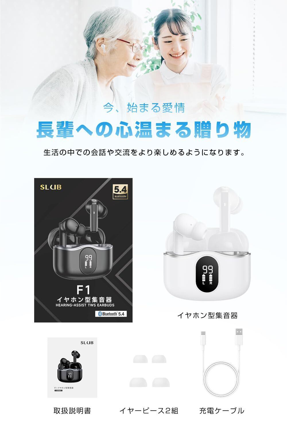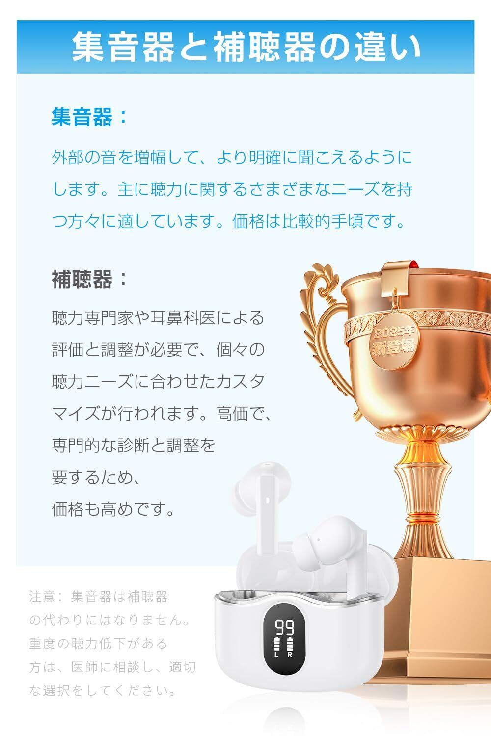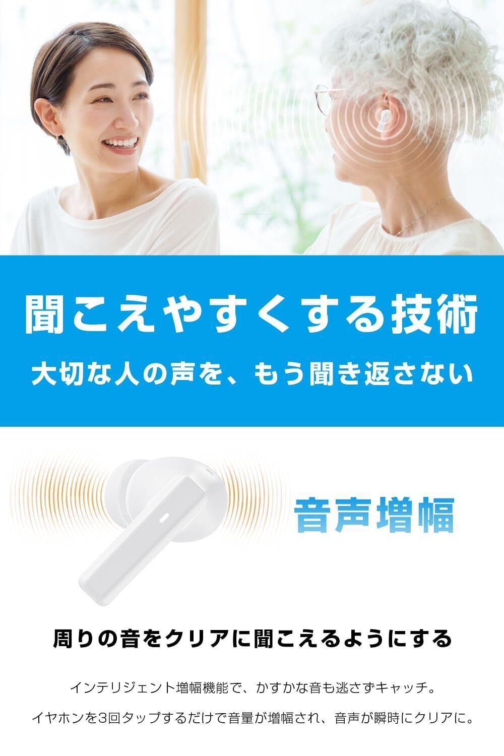 【2025新登場 1台2役】 集音器 高齢者 イヤホン型 しゅうおんき Bluetooth5.4 両耳/片耳対応 Type-C充電式 カナル型 ANC+ENC ノイズキャンセリング 5段階音量調節 小型 軽量 簡単操作 音量調節 遅延ゼロ 自動ペアリング LEDディスプレイ表示 Bluetooth搭載電話/テレビ/音楽対応 敬老の日 母の日 父の日 プレゼント (ホワイト)