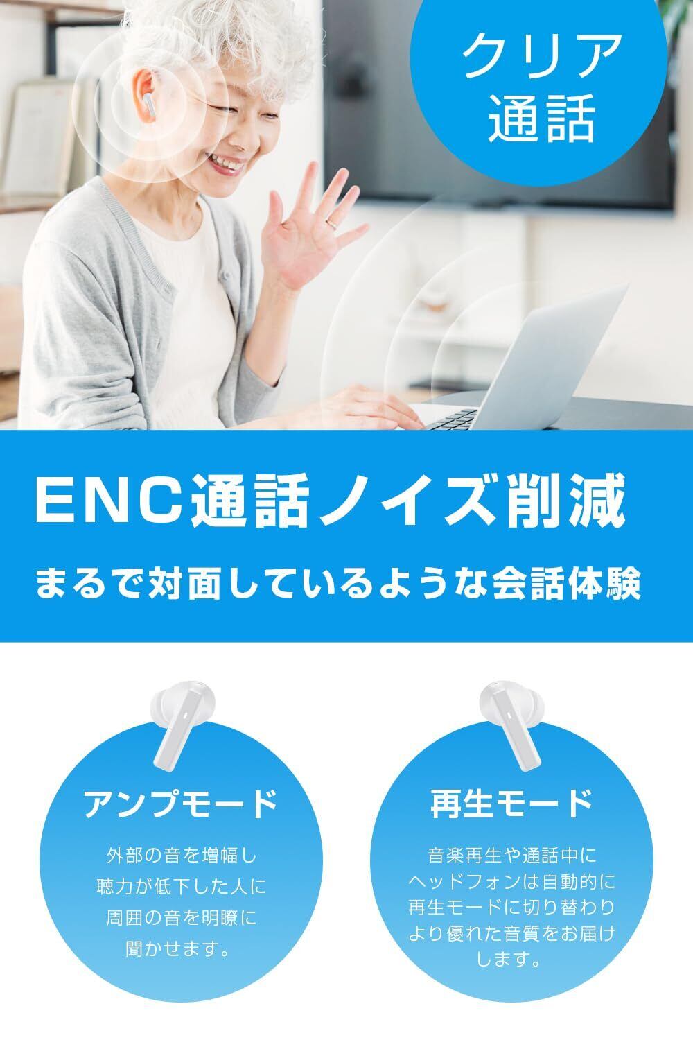 【超軽量&使いやすさにこだわった設計】当社のオーディオデバイスは、超軽量の設計にこだわり、日常生活に快適に溶け込みます。目立ちにくいデザインで、耳への負担を最小限に抑え、長時間の使用でも疲れを感じず、快適なオーディオ体験を提供します。特に高齢者や初心者に配慮した直感的な操作デザインが魅力的です。分かりやすい操作を採用し、音量調整やモード切り替えなどの基本操作が簡単に行えます。複雑な設定を必要とせず、素早く所望の機能を使いこなせます。また、最新の音声技術を搭載しており、クリアで明瞭な音質を実現。ノイズキャンセリング機能により、周囲の雑音を効果的に遮断し、自分だけのオーディオ空間を作り出します。どんな環境下でも、快適で心地良い音楽鑑賞や通話体験をお楽しみいただけます。