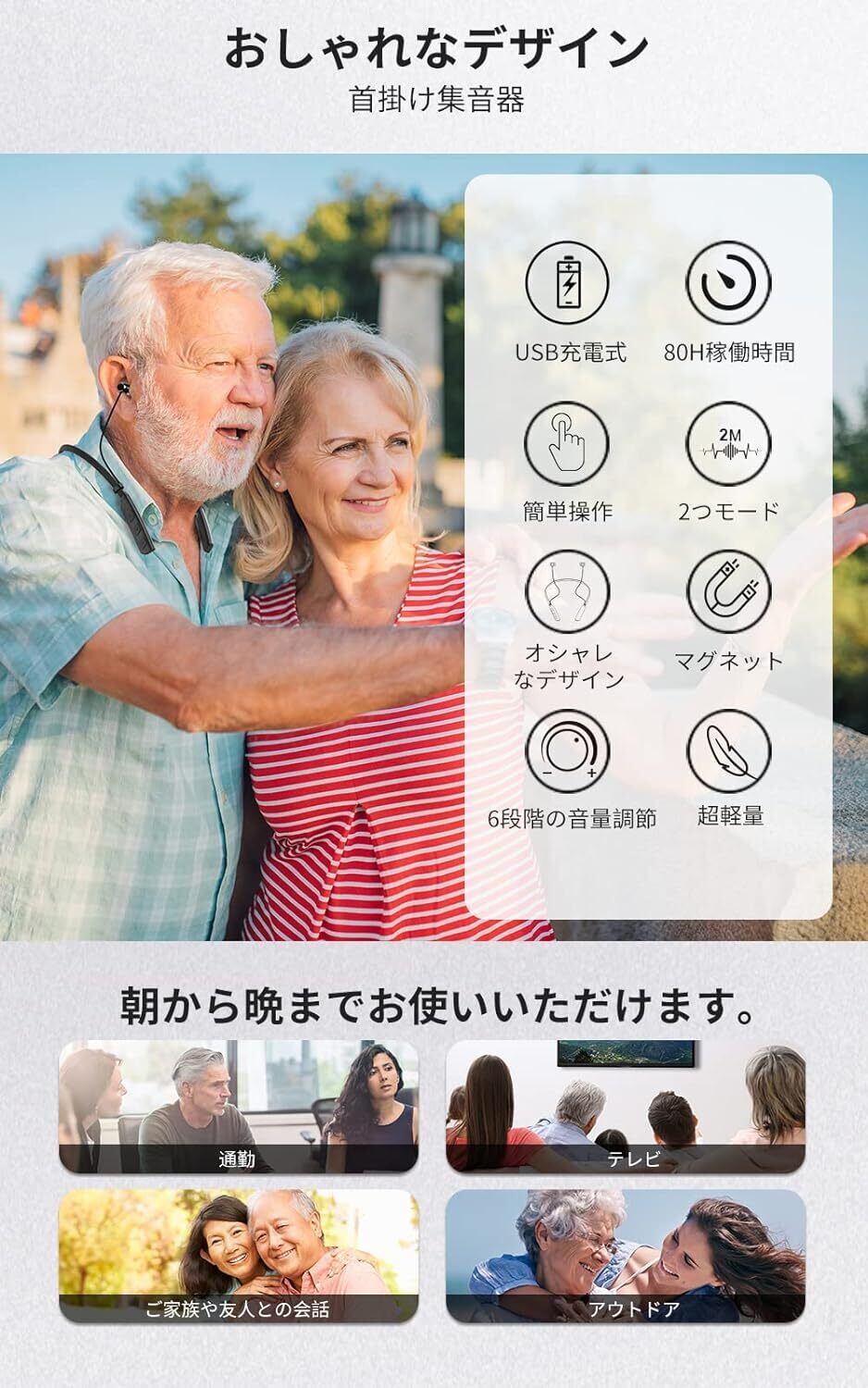 集音器 高齢者 首かけ集音器 充電式 首掛け式 ノイズ低減 ハウリングしにくい イヤホン型 両耳 80時間稼働 初心者集音器 USB充電 父の日 母の日 敬老の日 プレゼント【ブランド正規品】