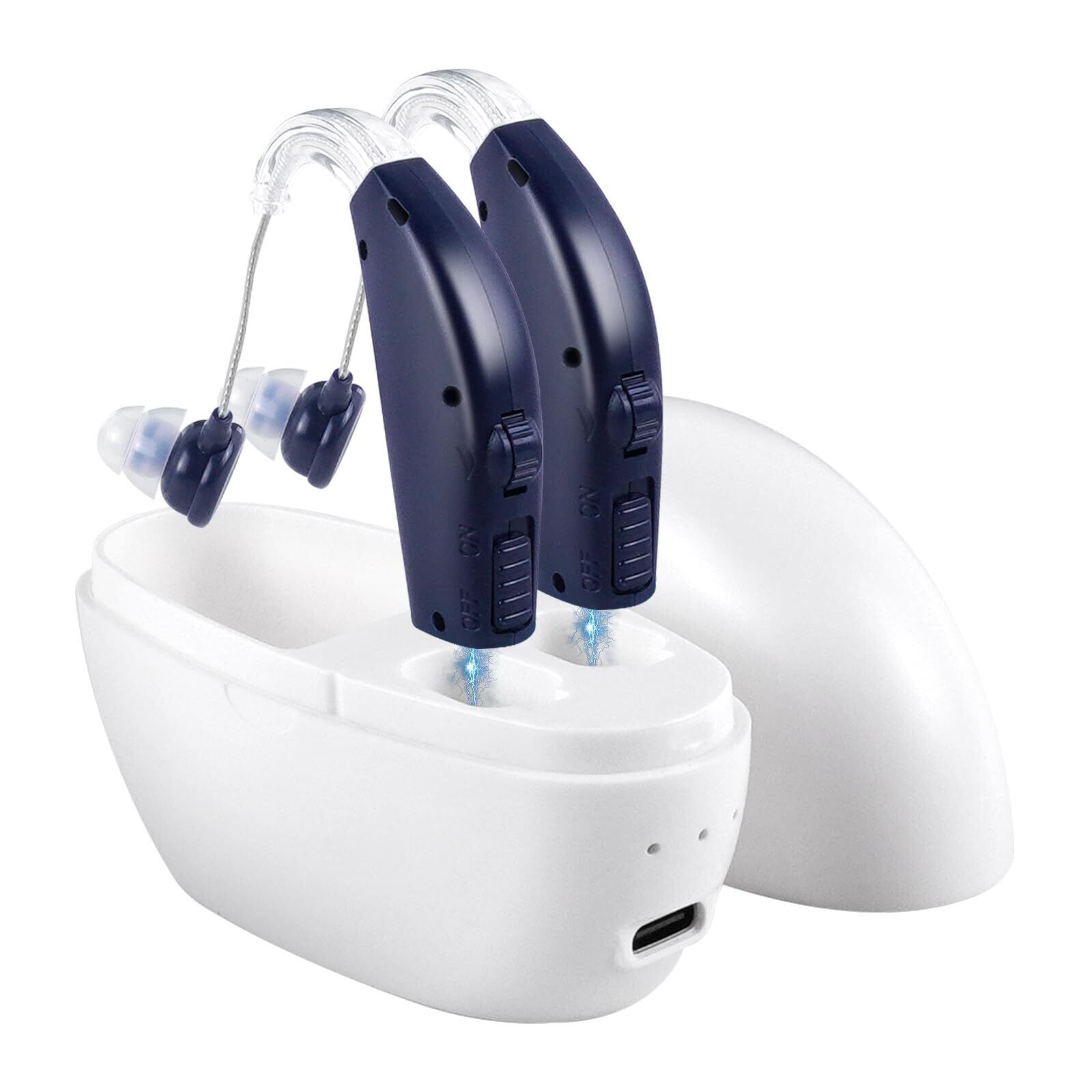 2025 VCOM 集音器 充電式 両耳対応 軽量 耳穴式 高齢者向け ステップレス音量調整 静音設計 シリコンチップ付き 収納充電ケース付き 日常会話 敬老の日 父の日 母の日 ギフト