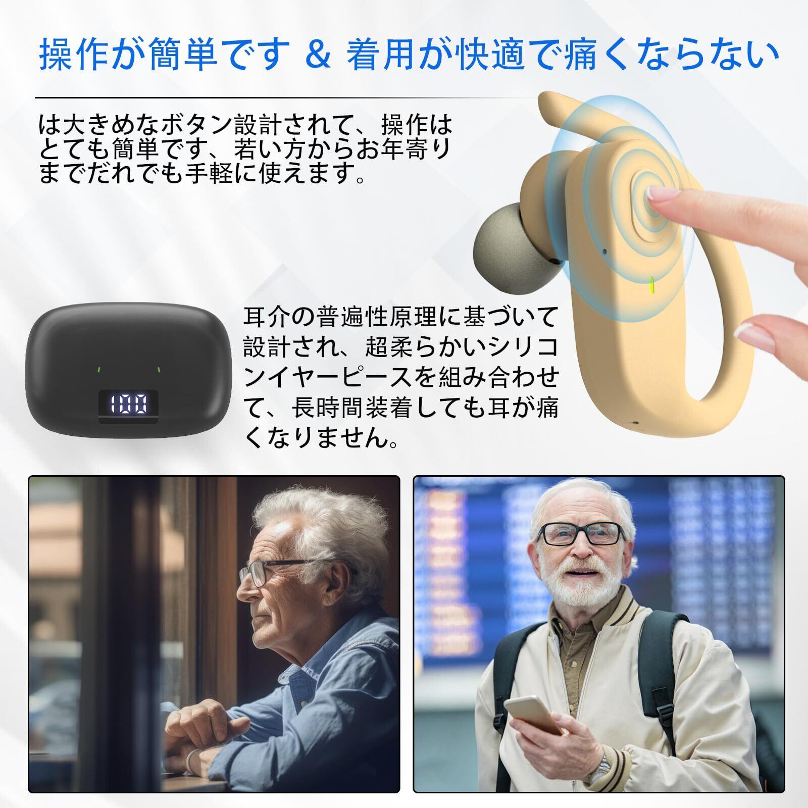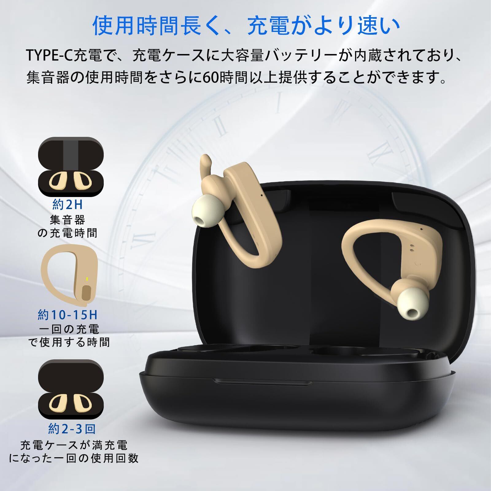 【快適な装着感・充電式集音器】耳介の普遍性原理に基づいて設計され、超柔らかいシリコンイヤーピースを組み合わせて、長時間装着しても耳が痛くなりません。人間工学に基づいたデザインはファッショナブルで目に見えないため、使用者に心理的な圧力を与えません。集音器を充電ケースに入れると充電が開始されます。充電ケースがフル充電になった場合は、集音器を約2-3回充電することができます。