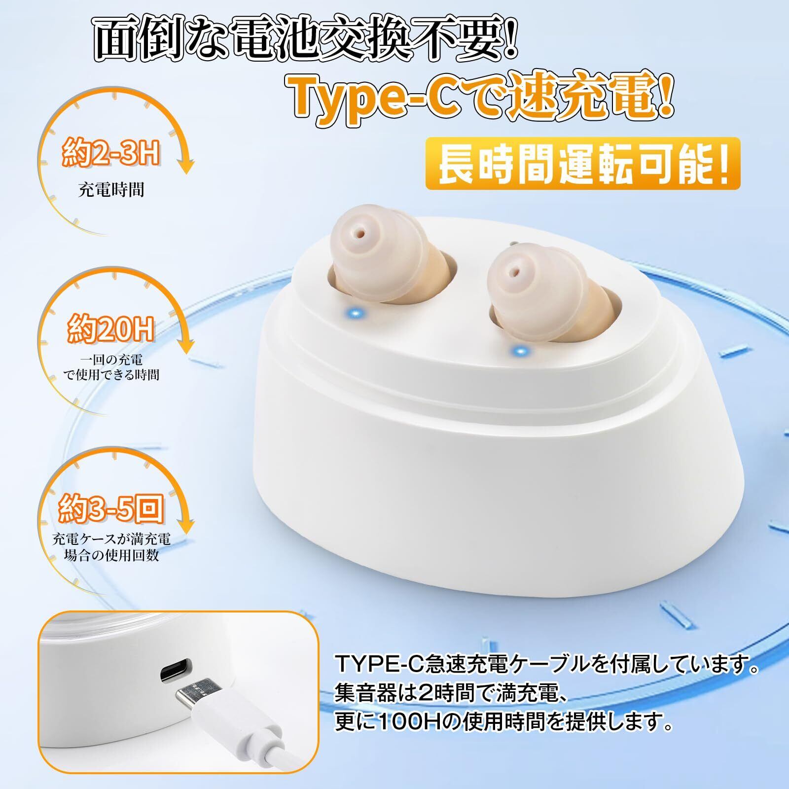 集音器 高齢者 しゅうおんき【2025年革新型・7月最新作・小さい耳にもフィット】無段階音量調整 簡単操作 音声拡聴器 2g超軽量 最大20-30時間連続使用 Type-C充電式 自動電源ON/OFF 両耳/片耳対応 人間工学設計1000mah充電ケース 装着快適 目立ちにくい 耳穴型デザイン 敬老の日 母の日 父の日 プレゼント 日本語取扱説明書