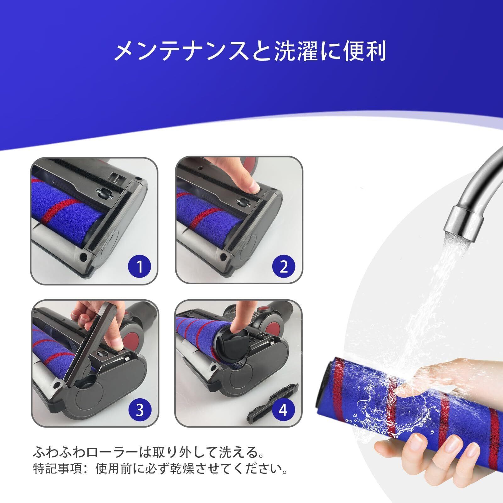 - 【取り付けとメンテナンスが簡単】このブラシにはプッシュスイッチが付いており、ドラムを直接取り外して水で洗浄できるので、メンテナンスが簡単です。 注:次の使用前にドラムが乾いていることを確認してください。
