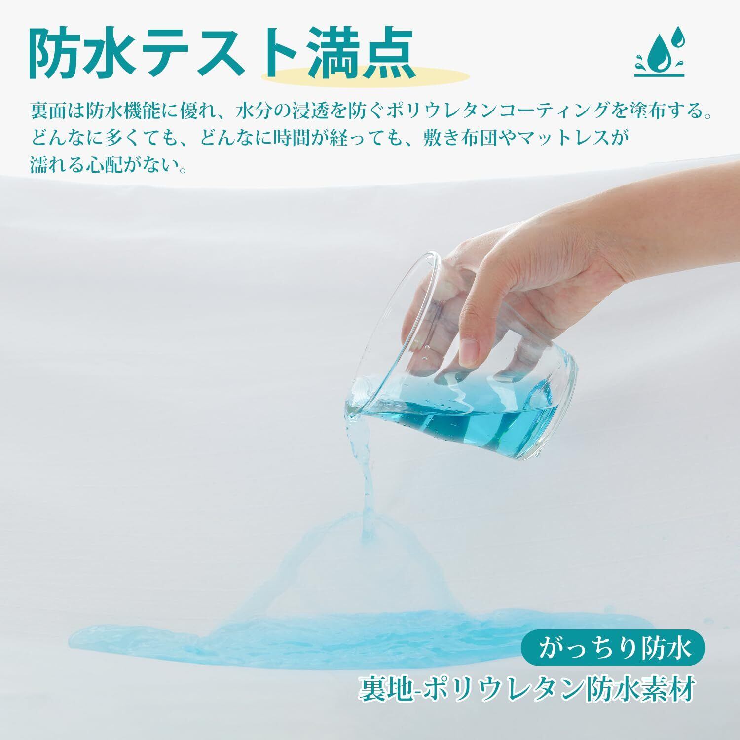 ・しっかり防水!水分をマットレスへもれずに安心!防水加工を施したシーツを使用することで布団やマットレスへの水分浸透を防ぎ、不快感を軽減し快適にお過ごしいただけます。