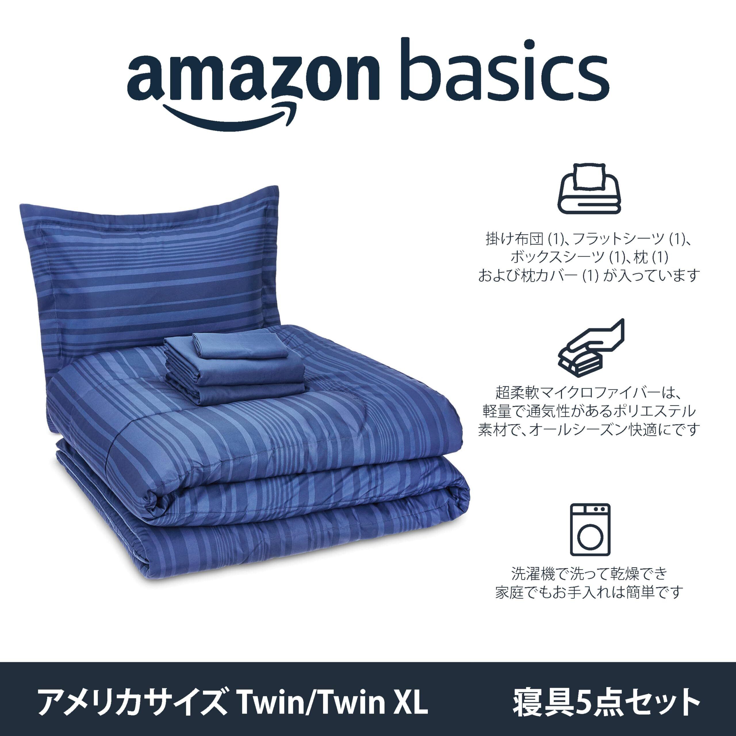 ベーシック 掛け布団寝具セット 軽量 マイクロファイバー素材 ブルーカルバンストライプ ツイン/ツインXL 5点セット