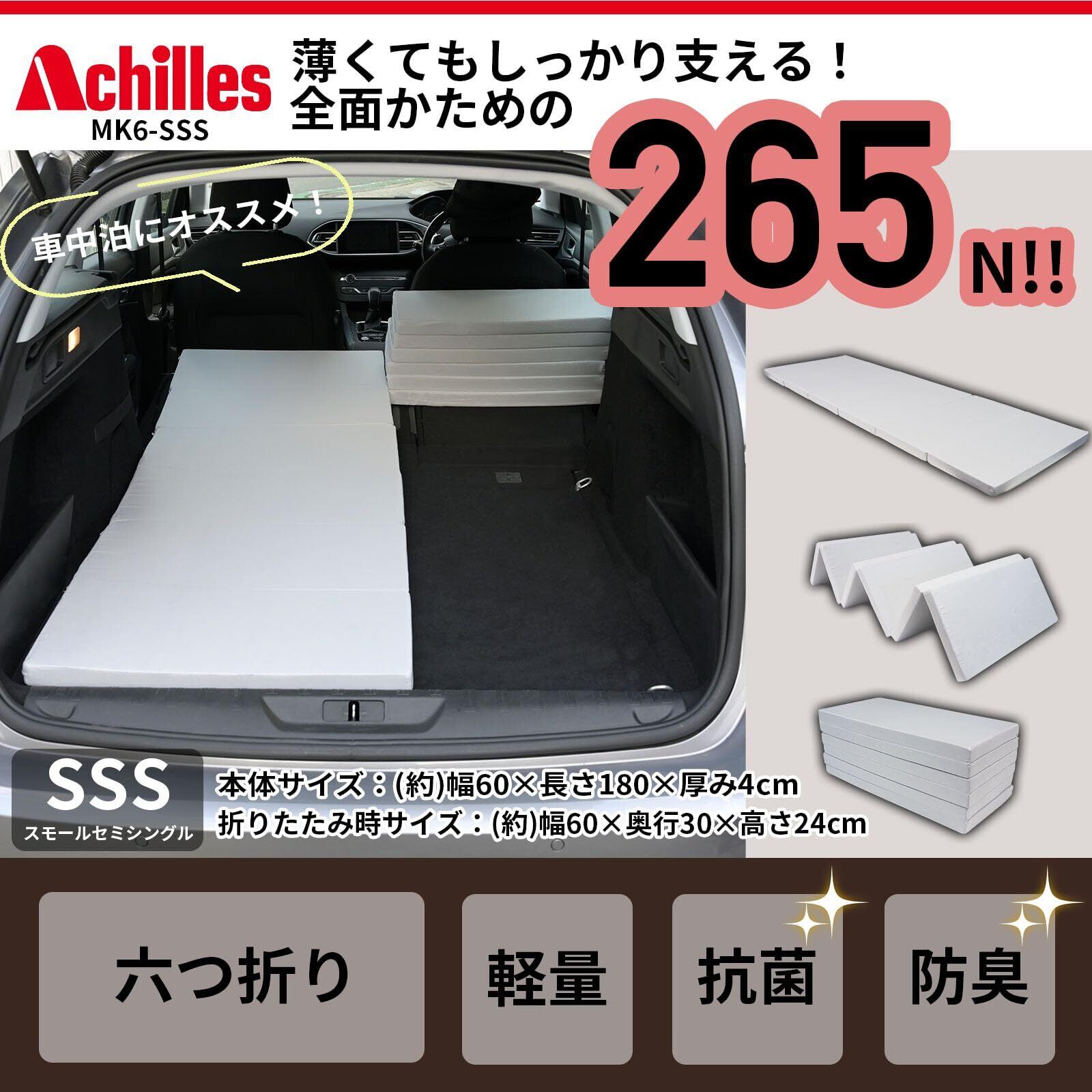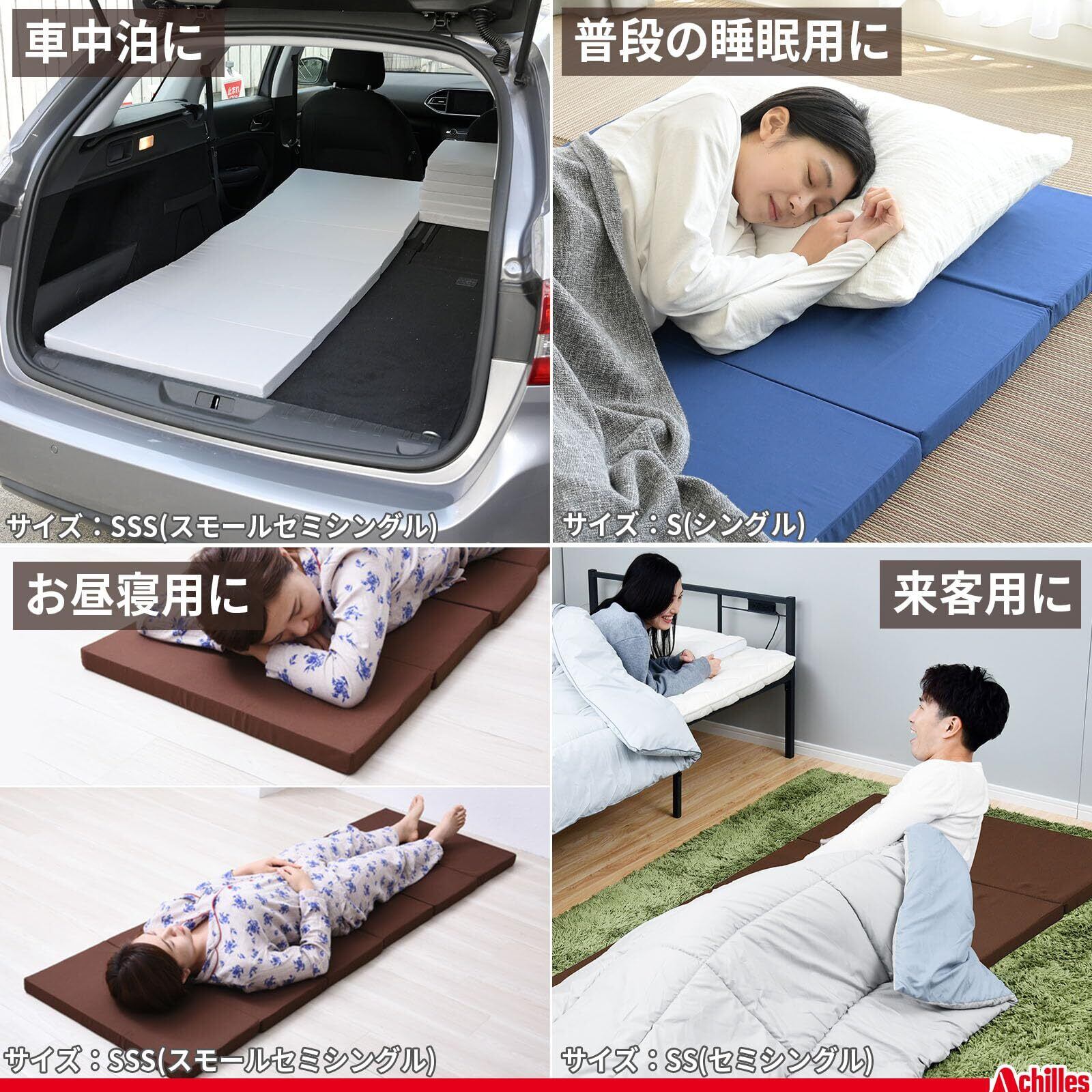 [アキレス] マットレス 折りたたみ 硬め 高硬度(265N) 腰痛 スモール セミシングル (幅60×長さ180㎝) 抗菌 消臭 厚み4㎝ 車中泊 災害 ごろ寝 六つ折り コンパクト ブラウン MK6-SSS BR