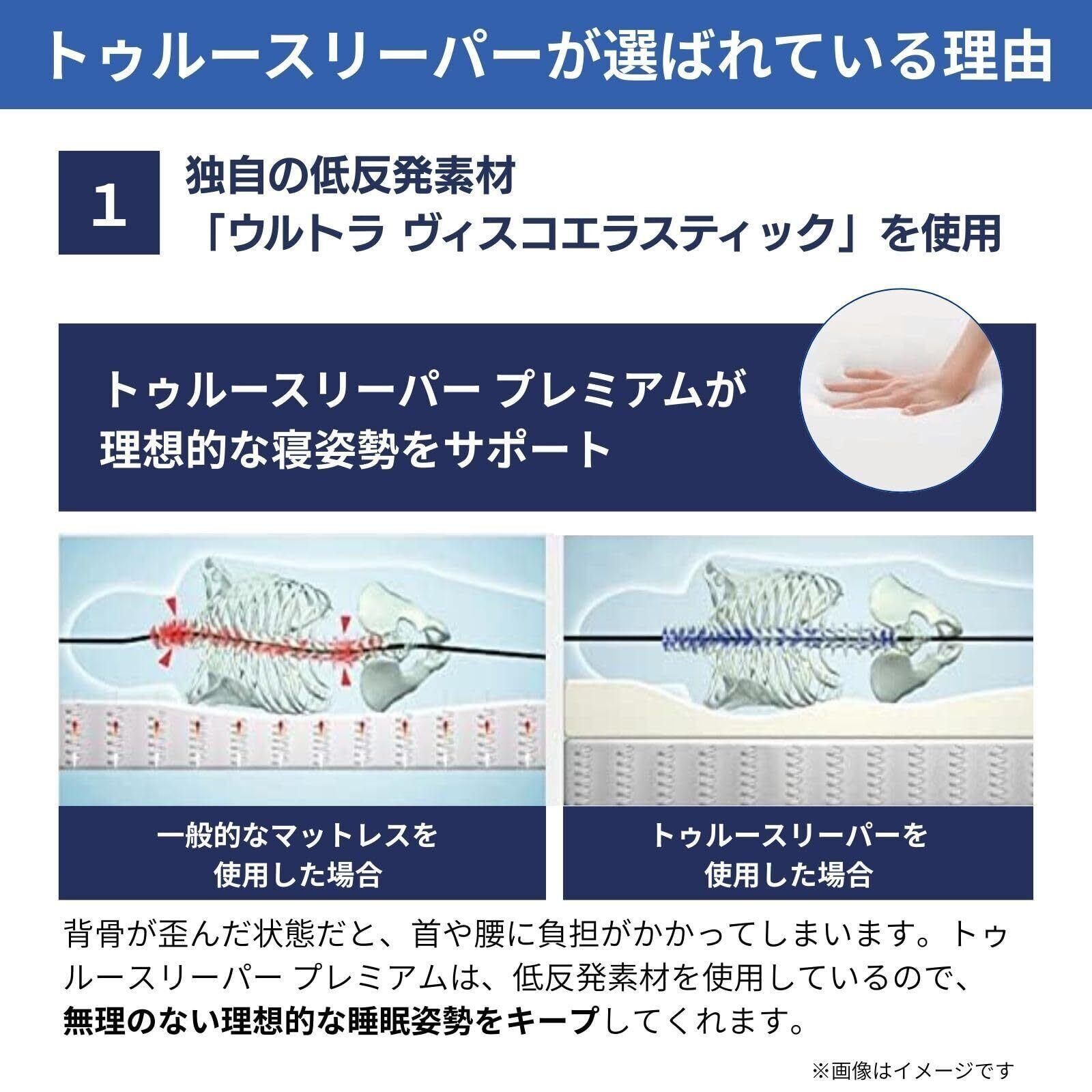 【無理のない睡眠姿勢をサポート】トゥルースリーパーは独自の低反発素材を使用しているので、体のラインに合わせて、隙間を埋めてフィット。体全体を優しく包み込み、無理のない寝姿勢をサポートしてくれます。快適に眠れて、朝の目覚めもスッキリです。