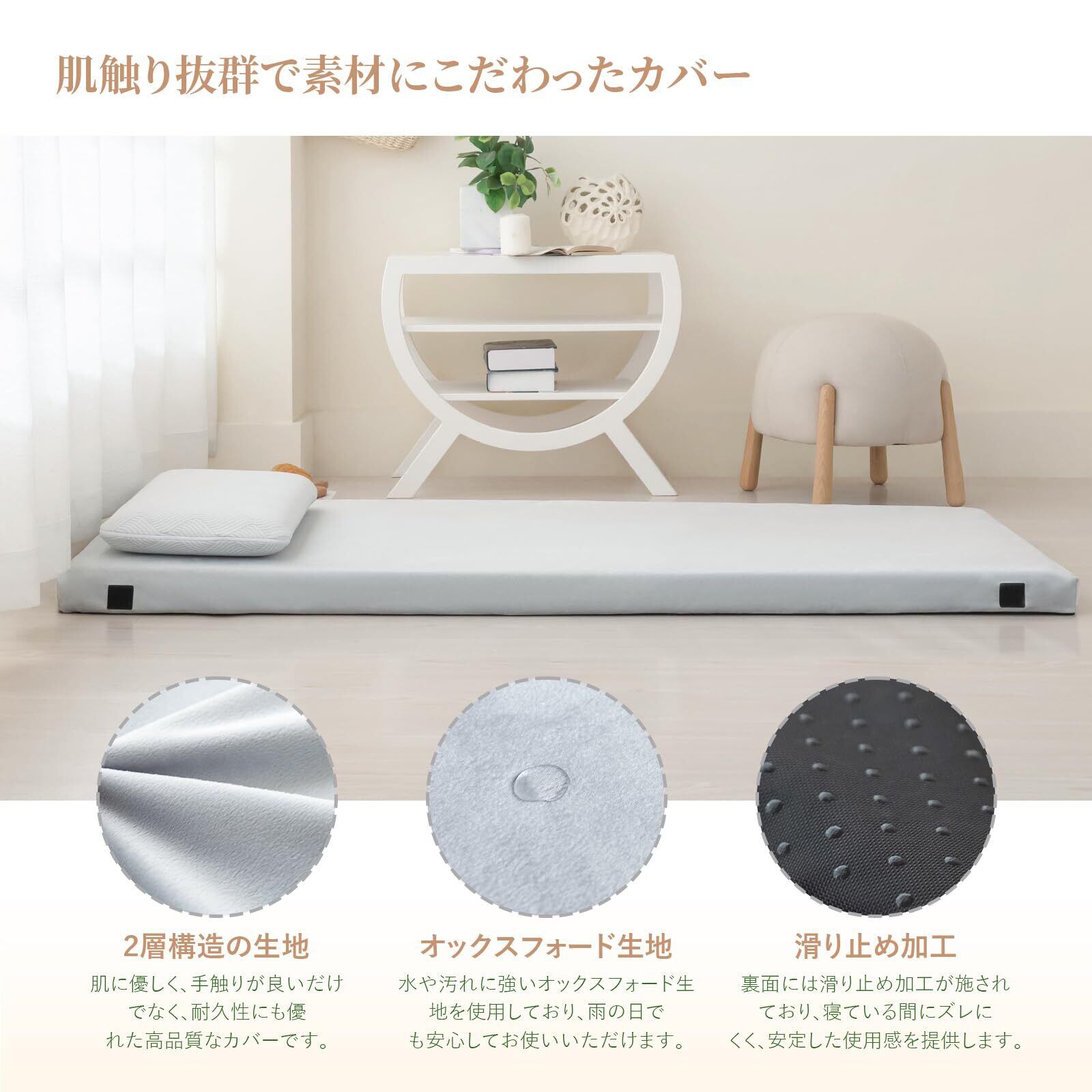 Wellflex ごろ寝マット 5年 防臭抗菌 快適寝心地 防水加工 キャンプ/車中泊/来客/防災用に最適 折りたたみ 来客用布団 バックル 丸めて収納 車中泊 マット 低反発 厚5cm 撥水加工 カバー洗える 枕付属なし