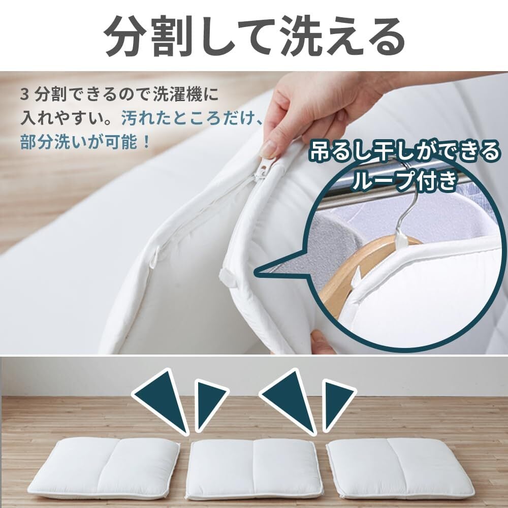 ●十分に脱水してから形を整え吊干ししてください。●洗濯時は洗濯機の説明書に従い付属の専用洗濯ネットを使用してください。●専用洗濯ネットは敷き布団の1/3サイズに対応しています。●取扱説明書をよくお読みになり正しくご使用ください。