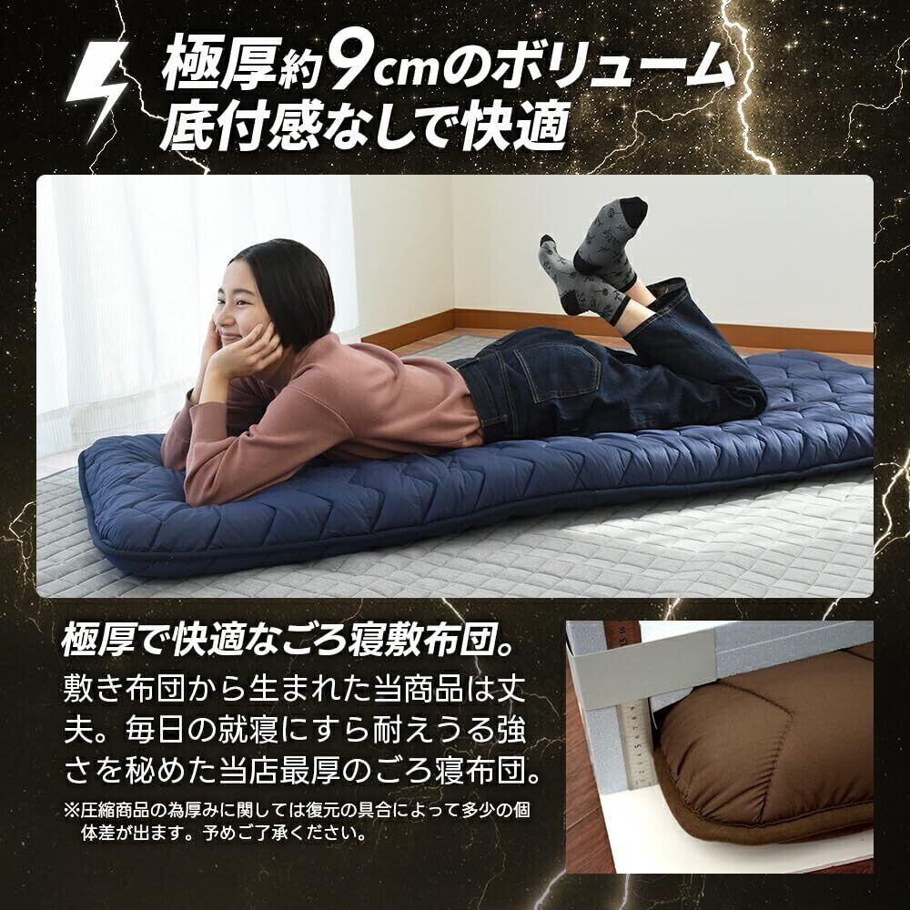 ごろ寝マット セミシングル 70×180cm 【しっかり四層!厚み9cm「本気のごろ寝」を叶える布団】 小さめ敷き布団 ブラウン ごろ寝布団 長座布団 防ダニ 抗菌 防臭 日本製 厚め 圧縮 「FUKATTO イナズマ」 敷き布団 小さめ コンパクト 車中泊 仮眠 来客用