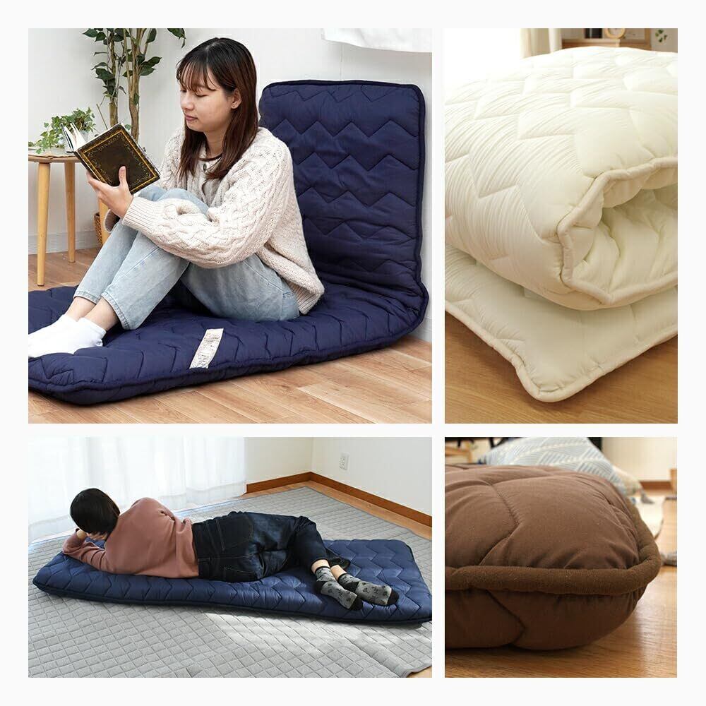 【サイズ】約70×180cm ごろ寝サイズ キルティング製品許容範囲+5%-3% 【組成】側地:ポリエステル100% 巻きわた:ポリエステル100%(600g) 中芯1:ポリエステル100%(900g) 中芯2:ウレタンフォーム 【本体重量】約2.7kg 【生産国・製造地域】日本製 【お取り扱い】家庭用洗濯機では洗えませんので、洗濯の際は、クリーニング店に相談してください。ふとんがわ地の傷みや汚れを防ぐため、カバーやシーツを掛けてお使いください。カバーやシーツはこまめに洗濯してください。ふとんは日に干すか、ふとん乾燥機をご使用ください。暖かさ、かさ高、弾力が増し、使い心地がよくなります。部分的にふとんがわ地が汚れたら、すぐにつまみ洗いし十分乾燥してください。染料の性質上、汗や摩擦で色落ちすることがありますのでご注意ください。