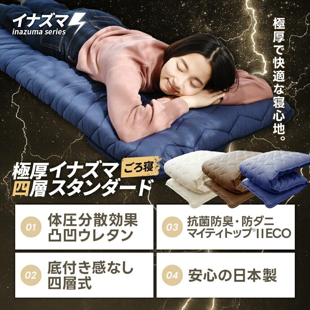 【敷き布団生まれのしっかりごろ寝マット】当店オリジナル、大人気の超ボリューム敷き布団「イナズマ」シリーズに、気軽に使えるごろ寝タイプが登場!ウレタンフォームをウエーブ構造にすることで、体圧をまんべんなく分散。うつぶせでも体が痛くなりにくく、長時間の使用にもぴったりです。