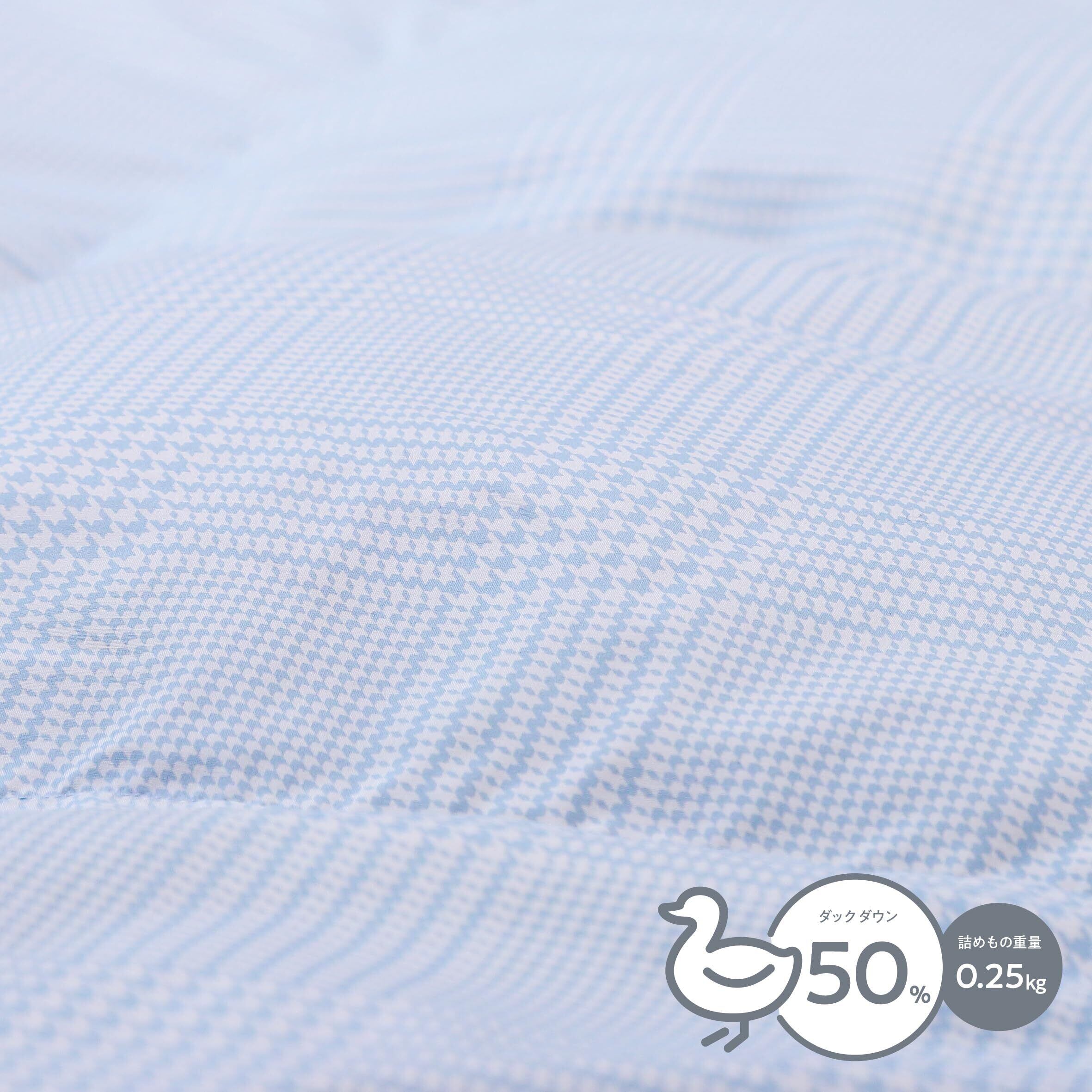 良質なダウンを50%使用。ダウンは空気をたっぷり含むことができる素材なので、空気の力で保温性や吸放湿性に優れ、掛け布団に最適な素材です。「ダウン」というと冬向けのイメージですが、実はその湿度調整力で、お布団の中を快適な環境にキープしてくれるので、季節の変わり目やクーラー冷え対策にも活躍します。