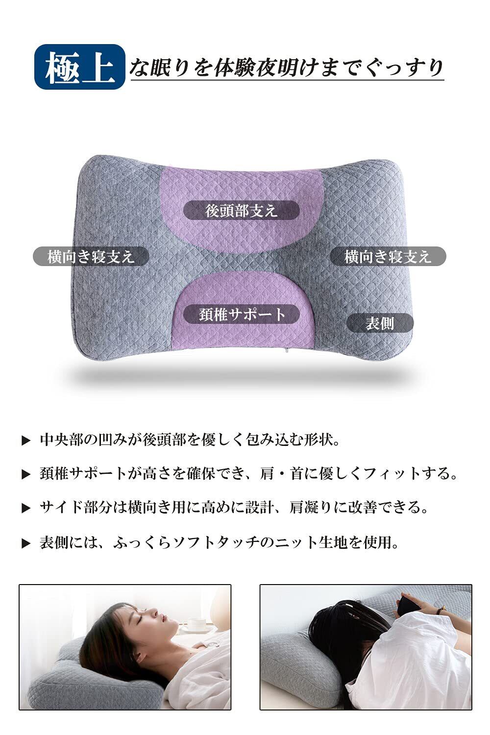 【肩こり/首こり対策】人間工学設計と圧力分散に優れた低反発により、体への負担を減少し、しっかりと頭、首、肩をサポートしてくれます。首や頚椎を正常な形にキープして、呼吸がスムーズに出来るほか、寝返りを軽減します。横向き・仰向け・うつ伏せ、どんな寝姿勢でもOK!体圧を均一に吸収・分散して、通常の枕とは比べ物にならない快適さと安定感を提供します。