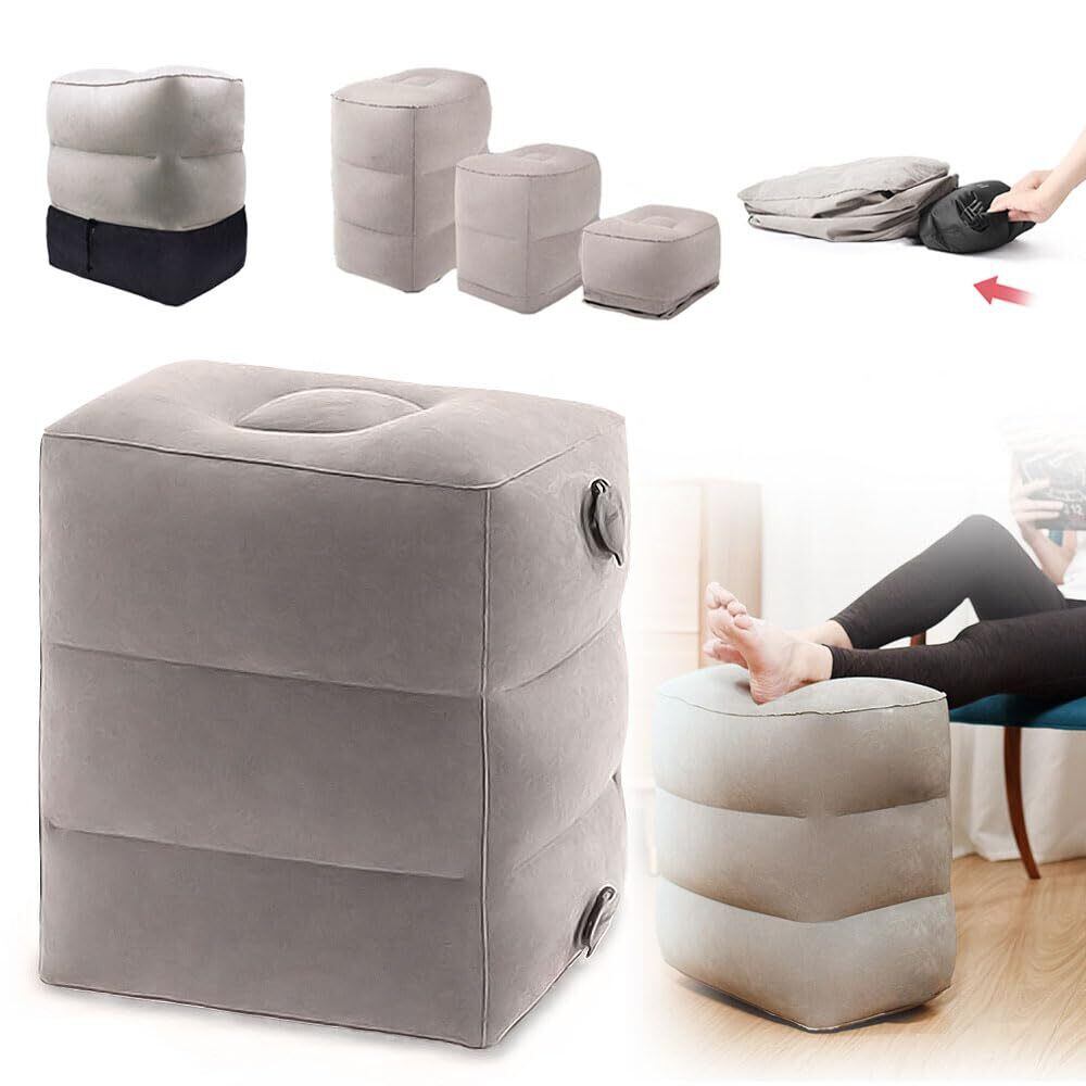 【持ち運びが便利】空気充填式フットレスト。空気注入口はバルブ式で、らくらく膨らますことができます。コンパクト収納で、携帯に便利です!様々なシーンに使えます。