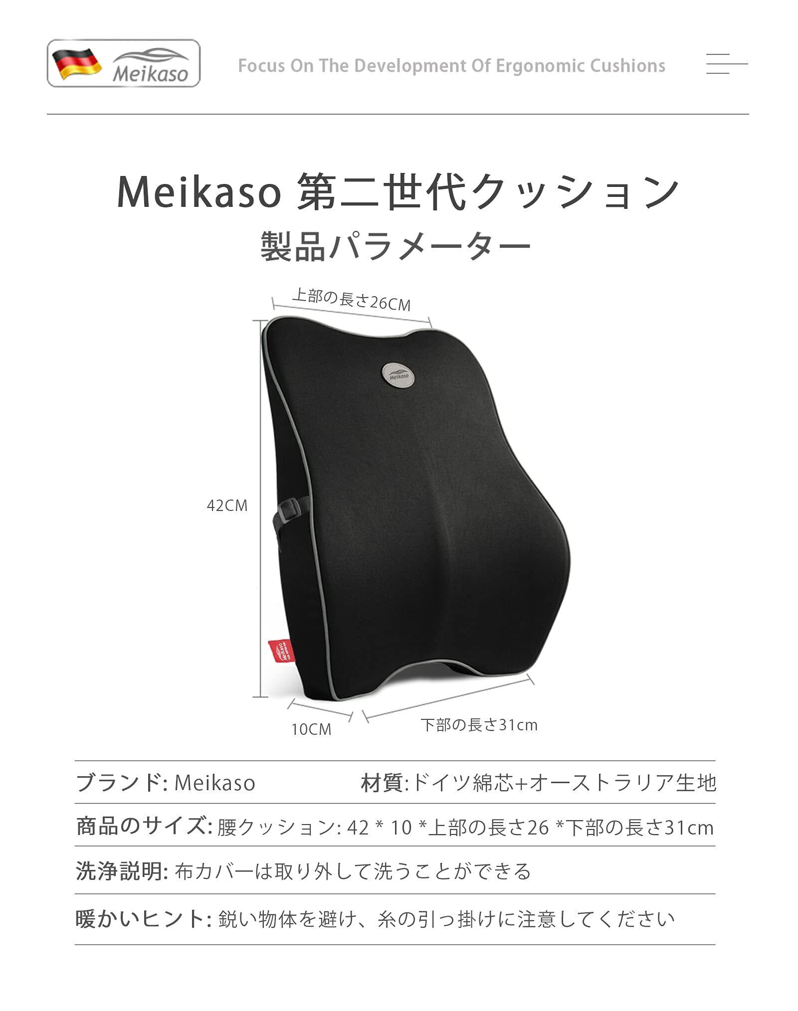 【Tarzan雑誌!紹介】Meikaso 腰クッション 低反発 ランバーサポート 人間工学の意匠オフィス 椅子 背もたれ 車用 腰枕 SGS認証/100D高密度クリア 取付バンド調節可能 洗える 着座 車/自宅/オフィス/プレゼント用 クッション母の日 父の日 敬老の日 (ブラック)