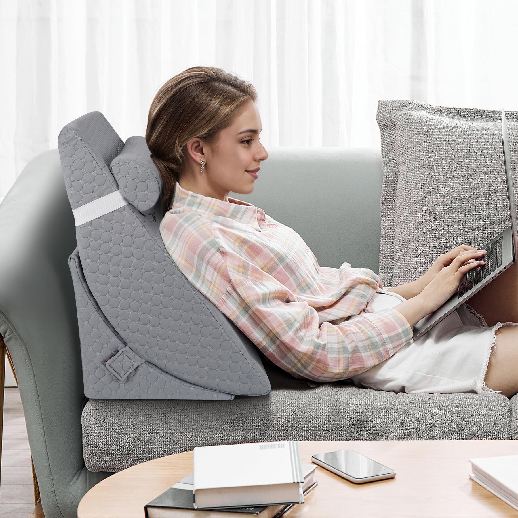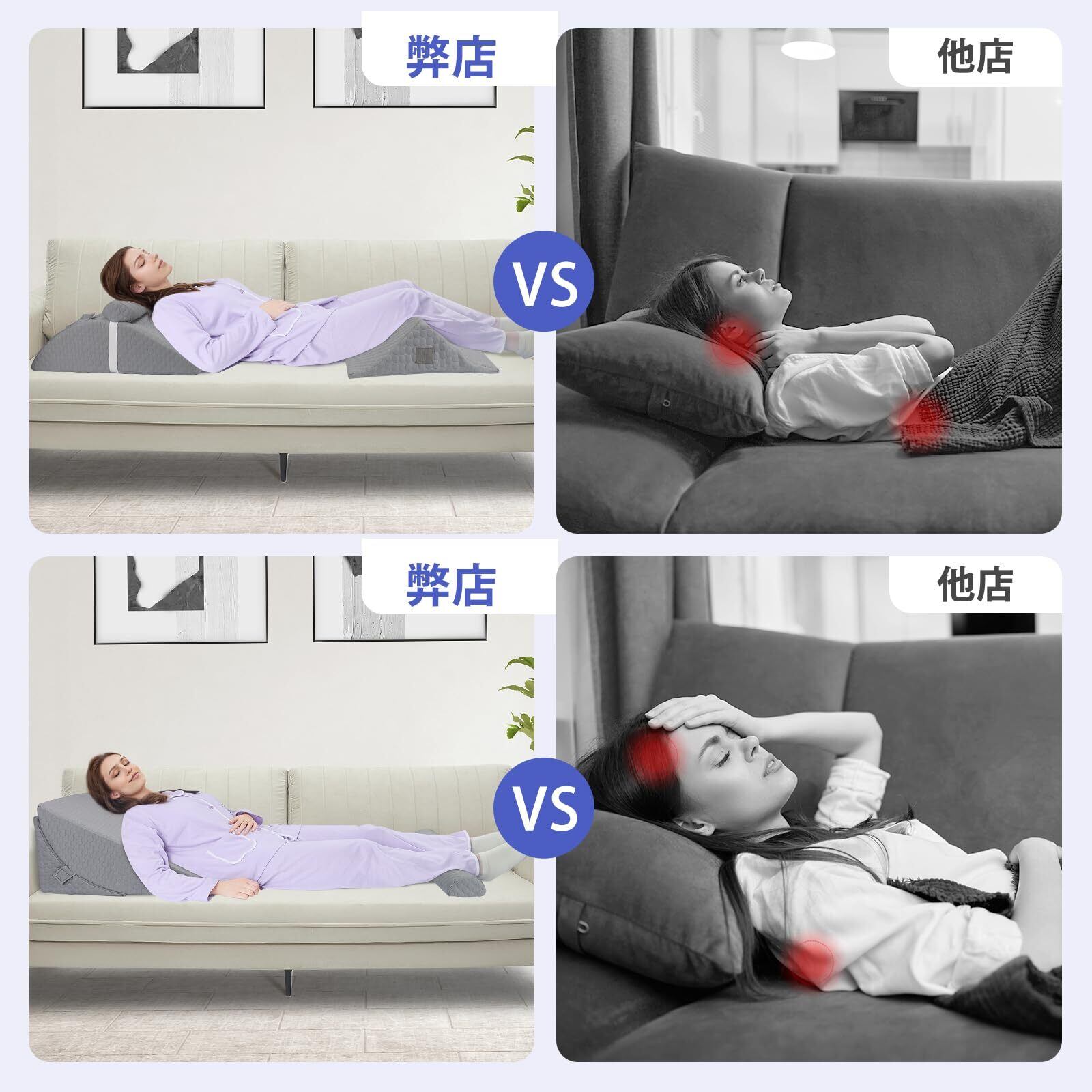【抜群の心地】人間工学に基づいた三角マクラは高品質の25Dウレタンフォームを使用しており、快適で通気性が良く、頭、肩、首、腹部、腰、足など体の各部位にちょうど良い硬さのサポートを提供。