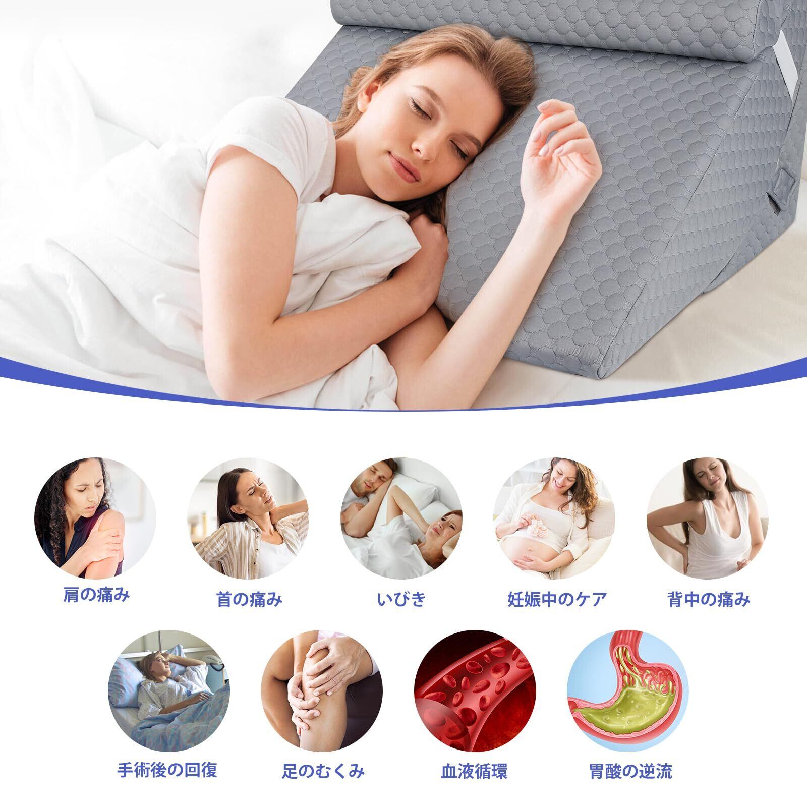 【多機能傾斜枕】背もたれクッションとして、テレビをみても、本を読んでも、寝ても快適で楽にできます。手術後に支えられ持ち上げられたくさび枕は、いびきを減らし、背中、足の痛み、呼吸の問題を緩和し、血行と健康を改善するのに役立ちます。良い三角枕 クッションはあなたのニーズを満たし、快適な夜の睡眠をサポートします