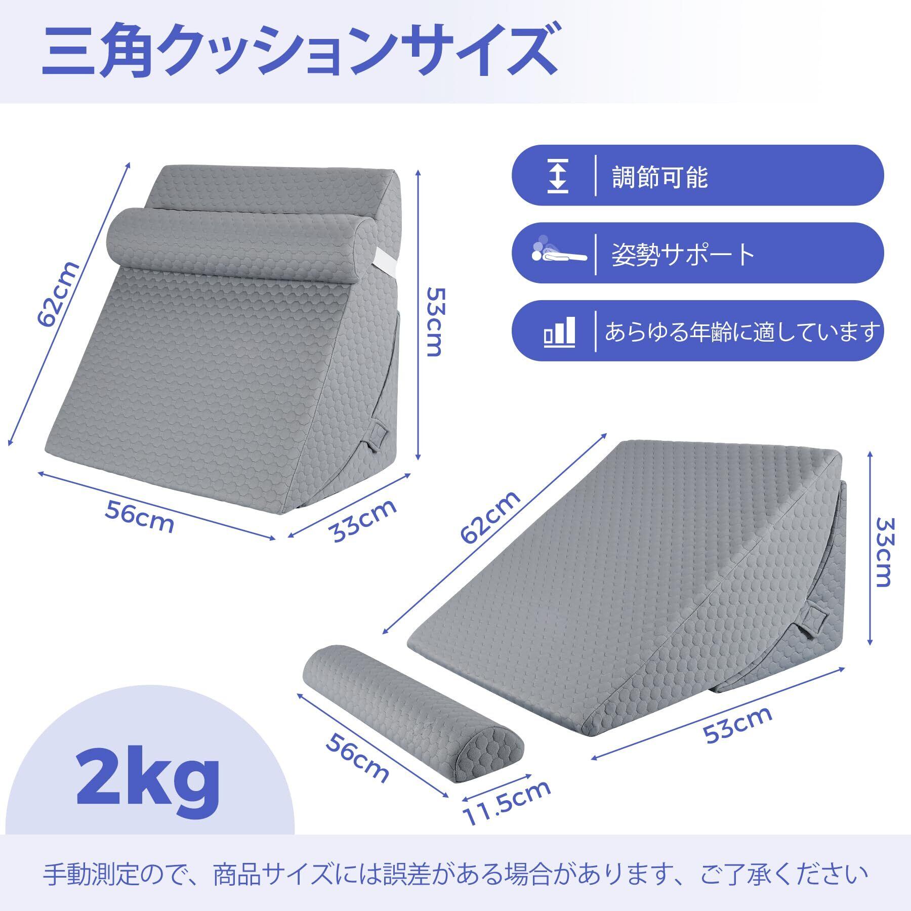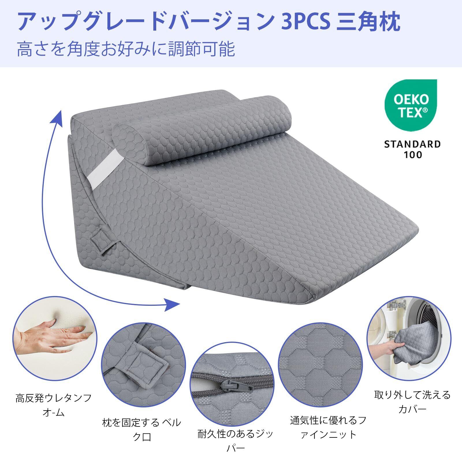 INFANZIA 三角クッション 三角枕 3個セット 背もたれ クッション 高さ調節可能 傾斜枕 足まくら 横向き寝 折りたたみ式 腰枕 就寝用 大きい 高反発 ウェッジ枕 体位変換 イビキ改善 お年寄り 老人用 (グレー)
