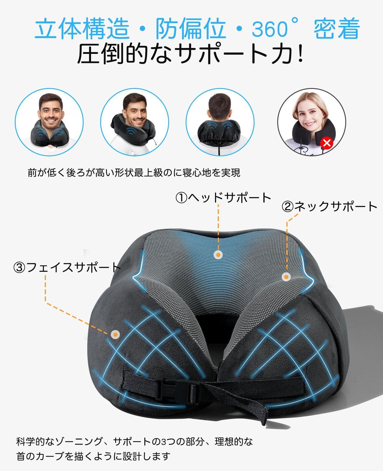 ️【低反発・柔軟性抜群】ネックピロー本体は高品質で高密度のポリウレタン・メモリフォームを採用しており、柔軟性と弾力性をを両立して、体圧分散機能と形状記憶機能を持っております。一方でまるで餅っとした柔らかい触感でしっかり首をサポートしてとももに、優れた弾力性能により、使用しない時にも迅速に元の形状に復元され、長時間使っても型崩れしづらいです。休息時には負担をかずに素早く眠りに入り、最も効果的に利用することができます。