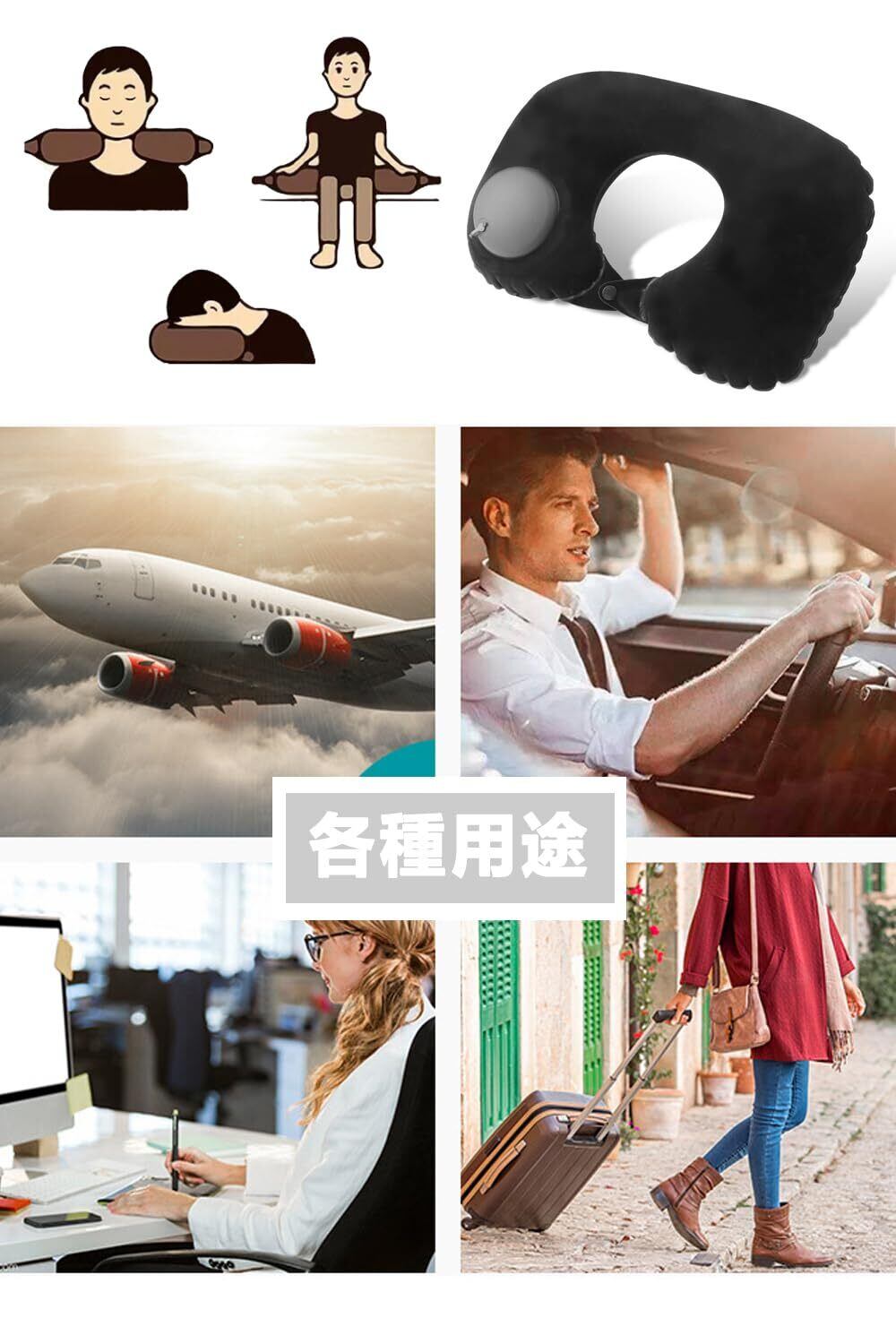 商品内容:U型まくら*1個。男女兼用です、旅行枕使用時は簡単に膨らませることができます、旅行や飛行機やオフィスや出張や昼休みにご利用いただけます。