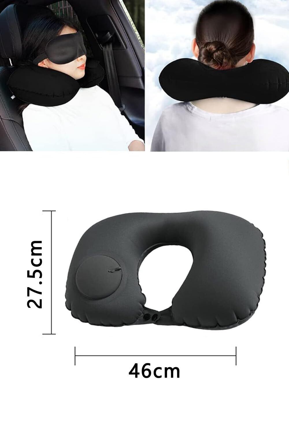 YFFSFDC ネックピロー U型まくら 携帯枕 首枕 手動プレス式膨らませる 旅行用 空気枕 エアーピロー 飛行機 旅行枕 軽量 便利 (ブラック)