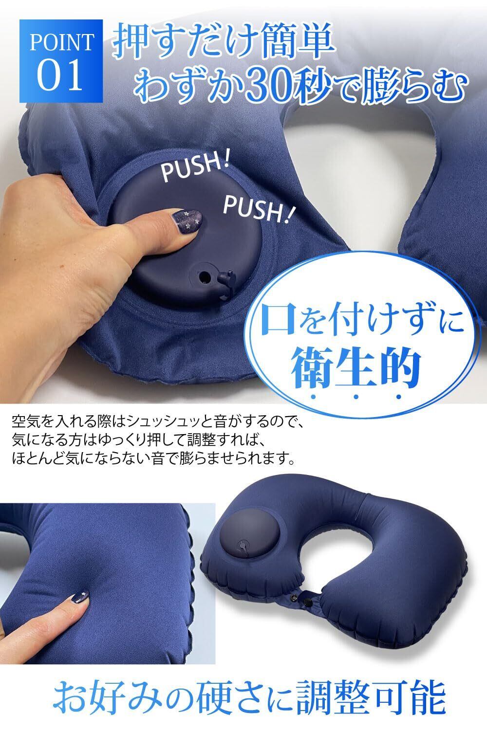 【 押すだけ簡単、口を付けずに衛生的 】 ポンプ式で口を付けずに、わずか30秒でスムーズに膨らみ、空気量を調整すればお好みの硬さに調整できます。空気を入れる際はシュッシュッと音がするので、気になる方はゆっくり押して調整すれば、ほとんど気にならない音で膨らませられます。衛生的でどこでも手軽に使える便利さが魅力です。