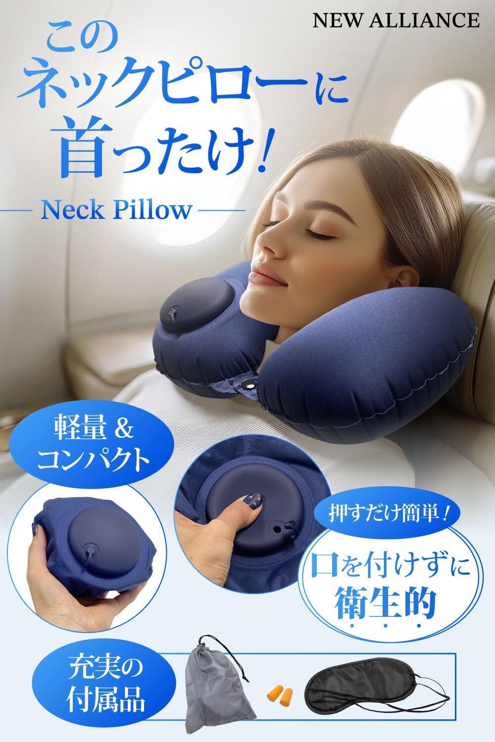 ネックピロー 【楽に寝付けるネックピローx圧倒的にコンパクト】[空気入れは必要無し(本体にポンプ有り)x手荷物でも邪魔にならない] [NEW ALLIANCE(ニューアライアンス)] (ブラック)