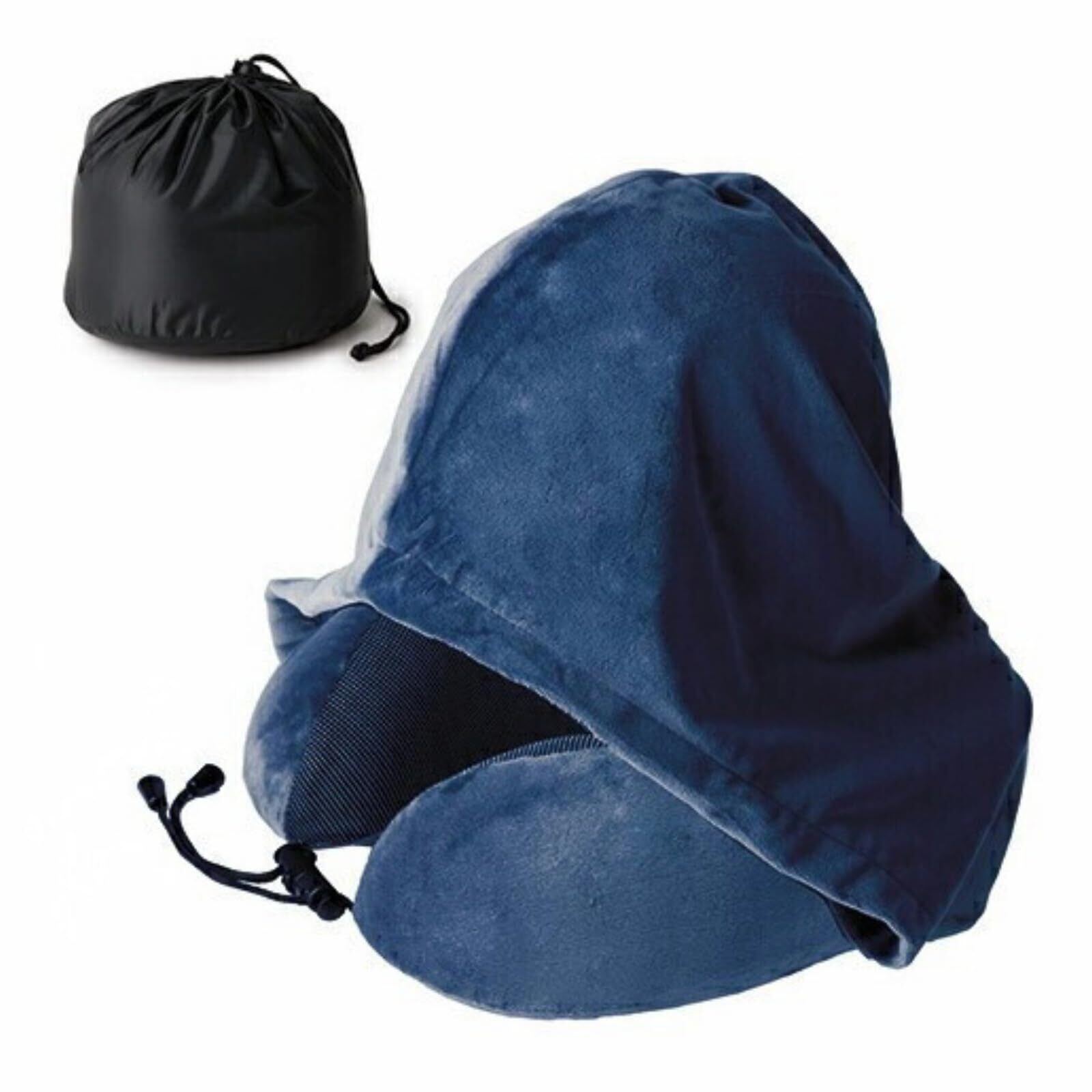 【あらゆる姿勢に対応x首フィット構造】 ネックピロー 飛行機 首枕 快適グッズ 【理学療法士推奨x寝具メーカー開発x疲れ知らずのトラベルを】【車xバスx新幹線に】旅行用 便利グッズ トラベルグッズ MyComfort 【コンパクトx極上の低反発素材】 (ネイビー(フード付き))