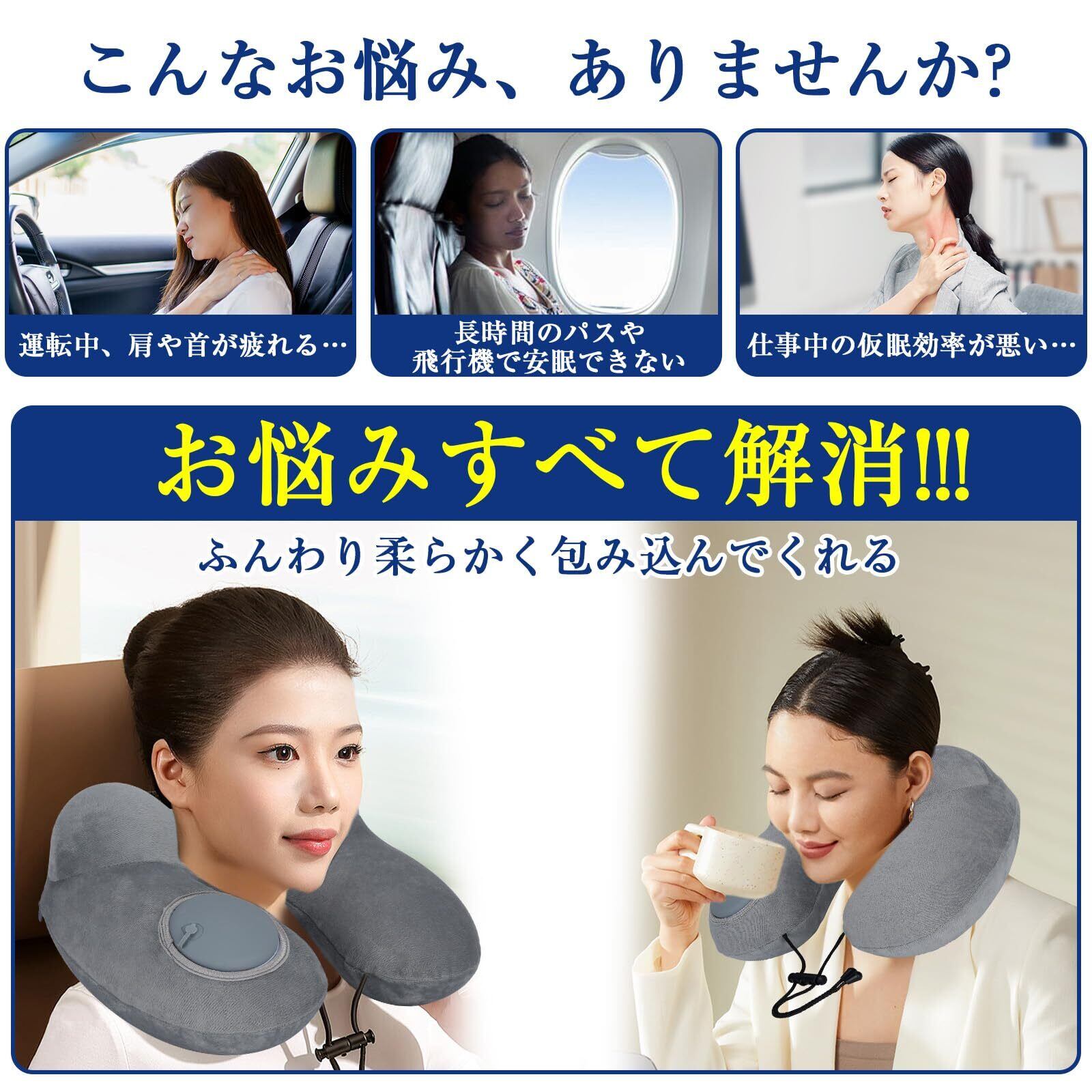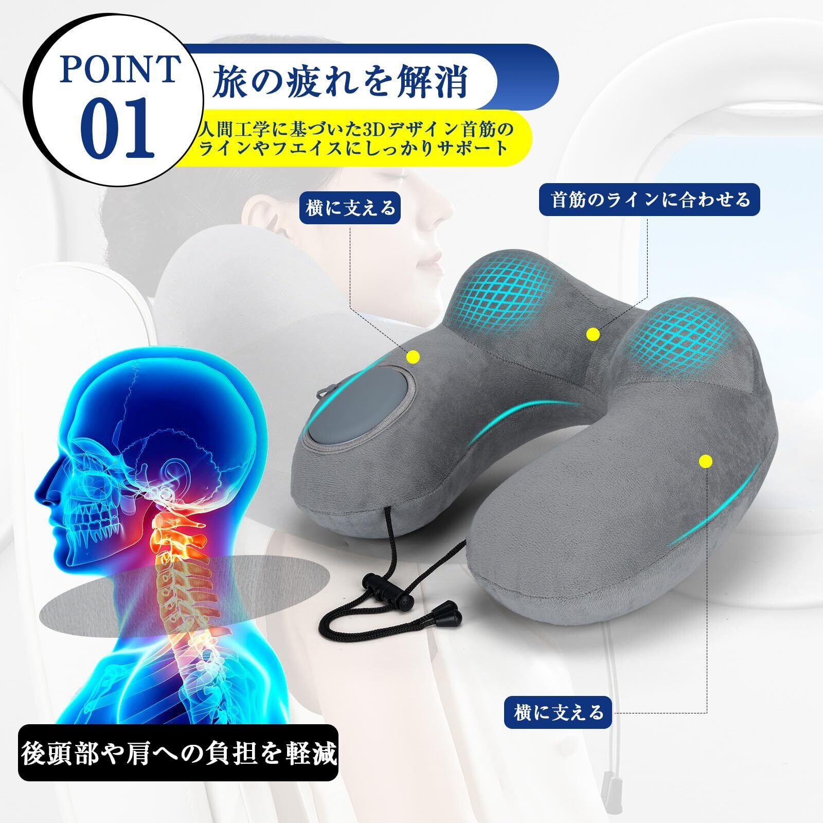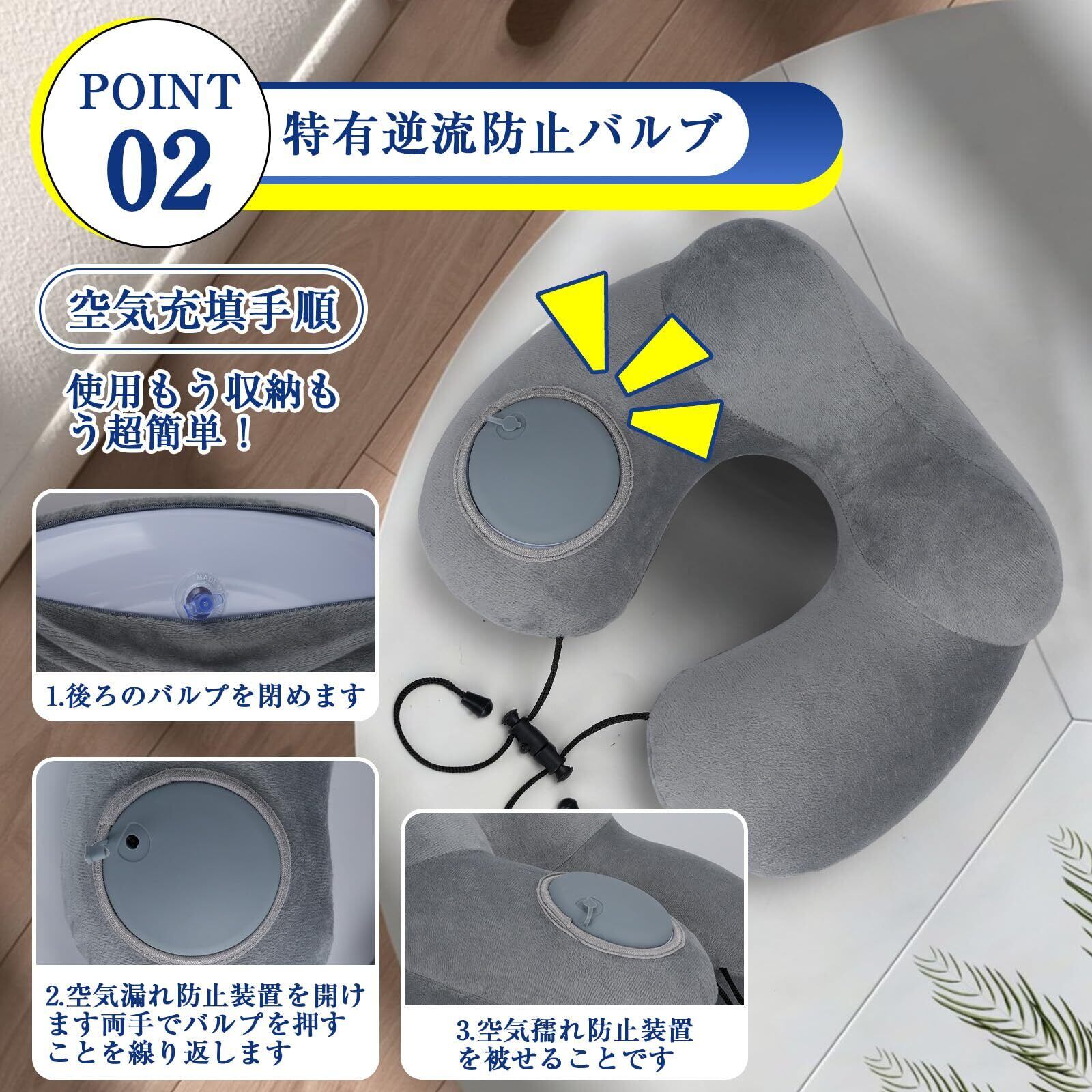 ネックピロー 首枕 携帯枕 U型 旅行用 旅行便利グッズ 収納袋 洗えるカバー エアーピロー プレス式膨らませる ネックピロー 飛行機 オフィスグッズ 自宅 バス (グレー)