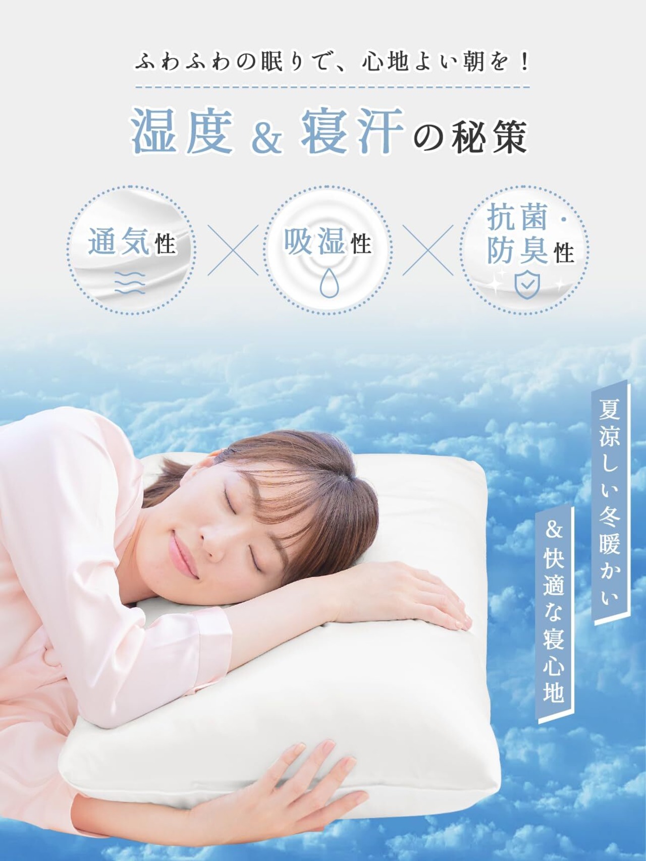 【通気性+吸湿性+抗菌・防臭】シルクは優れた優れた通気性、吸湿性と放湿性を持ち、肌の汗を素早く吸収、温度調節を助けます。 夏は涼しく、冬は温かく、四季を通して快適な睡眠環境を提供します。