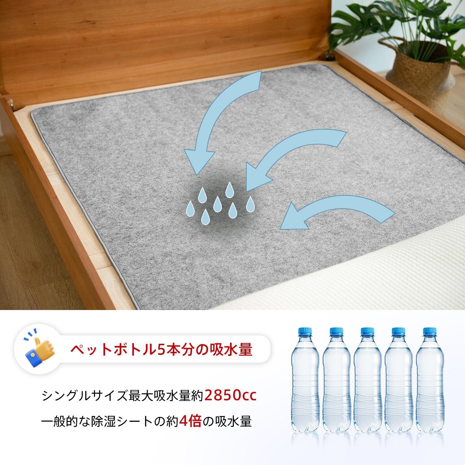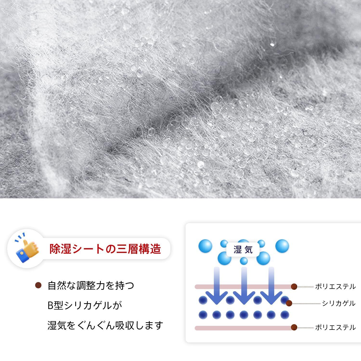 【カビ・湿気・結露対策】中材に除湿効果に優れたシリカゲルを使用して、床からの湿気や寝ている間に布団に染み込んだ汗などを吸収し、ジメジメな不快感を軽減してくれます。