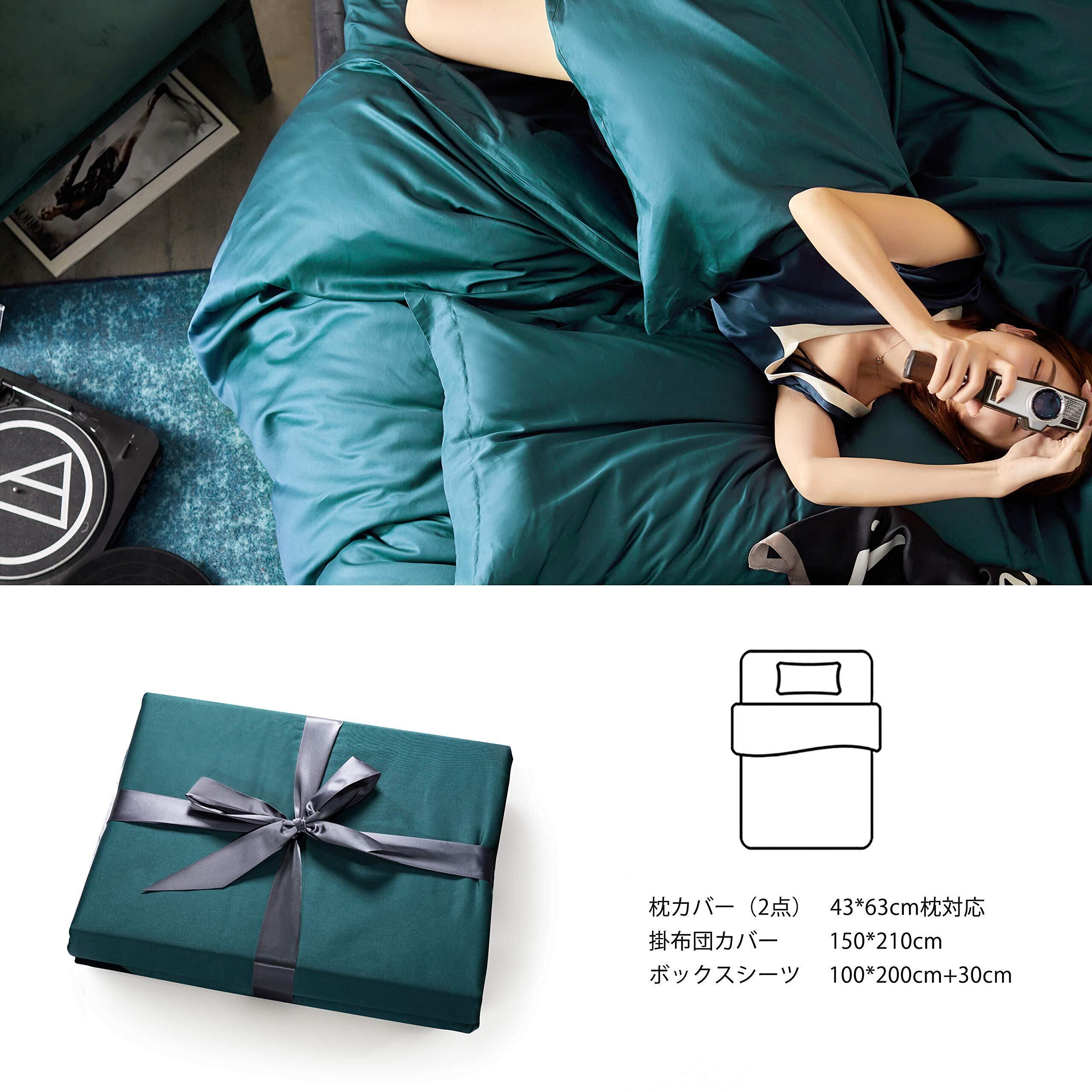 MILDLY 布団かばーシングル 4点セット エジプト超長綿100% 布団カバーセット シングル:掛け布団カバー ボックスシーツ 枕カバー*2 / 300TCサテン調:肌ざわりが良い 通気性に富んで 毎日の快眠で元気に過ごしたい方に(S・ピーコックブルー)