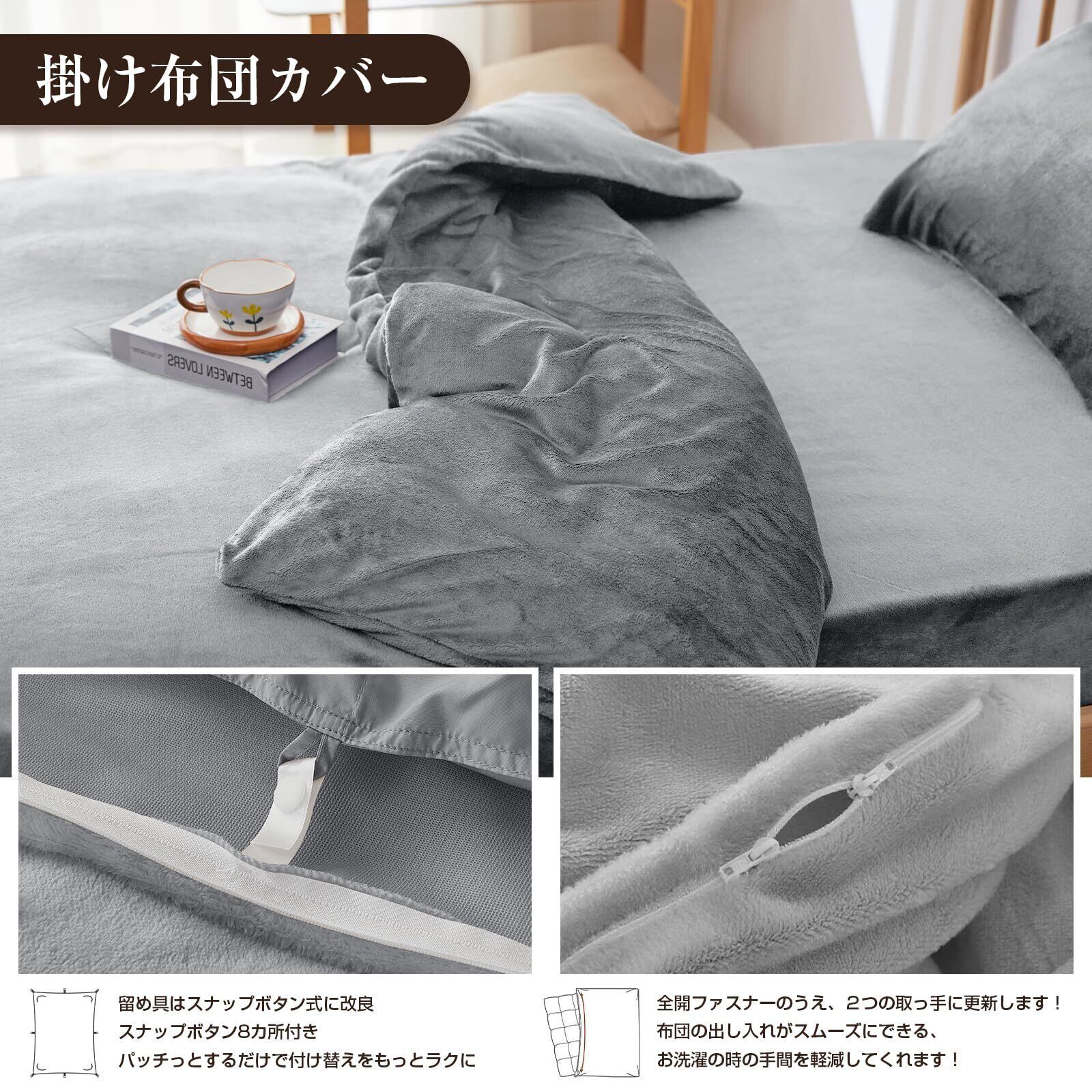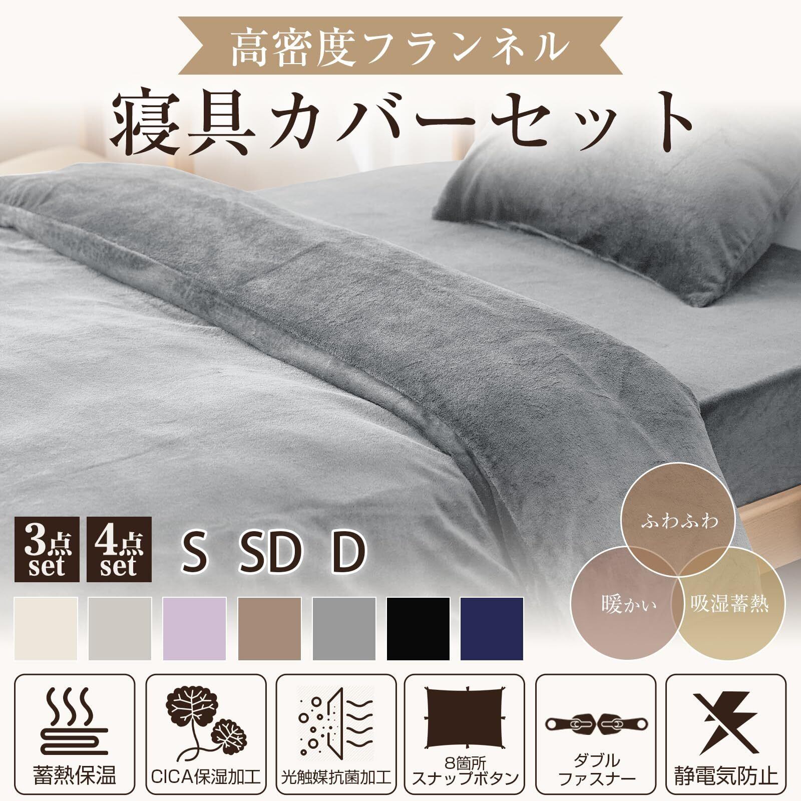 Housecover 寝具カバーセット フランネル生地 布団カバー 掛け布団カバー ファスナー仕様 ボックスシーツ 全周ゴム付き 枕カバー 合わせ式 ベッドシーツ 敷き布団カバー 洋式・和式兼用 洗い替え用 あったか マイクロファイバー 洗える 発熱 保温 静電気防止 丸洗いOK 冬 グレー セミダブル