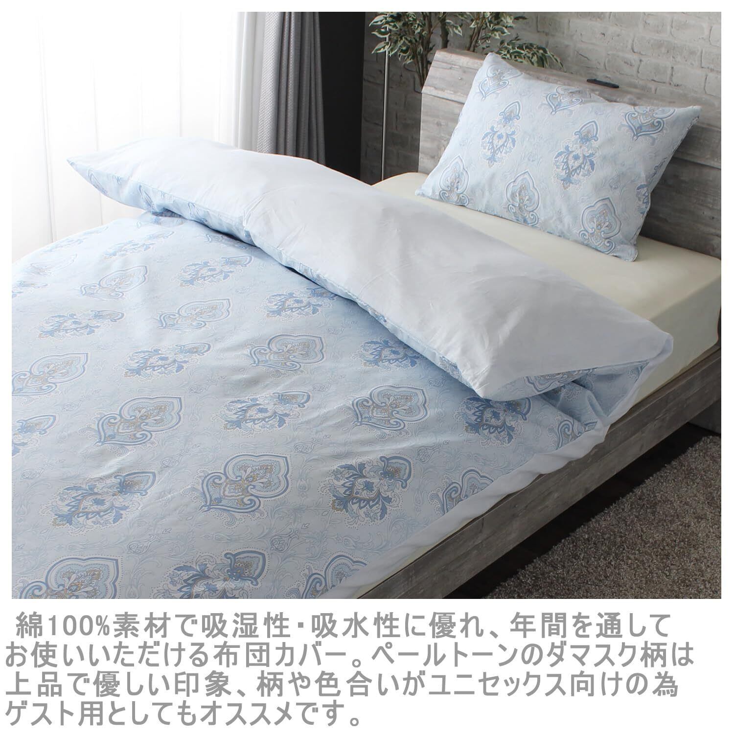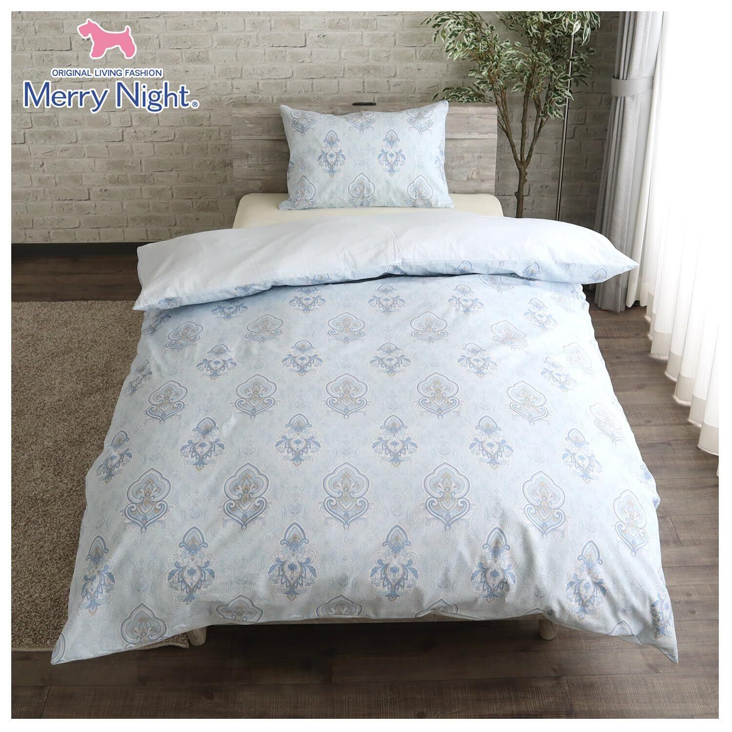 メリーナイト 掛け布団カバー 「エレガント」 ブルー シングル 約150×200cm 綿100% 吸湿性 通気性 天然素材 心地よい肌触り オールシーズン 洗える CT12012-76