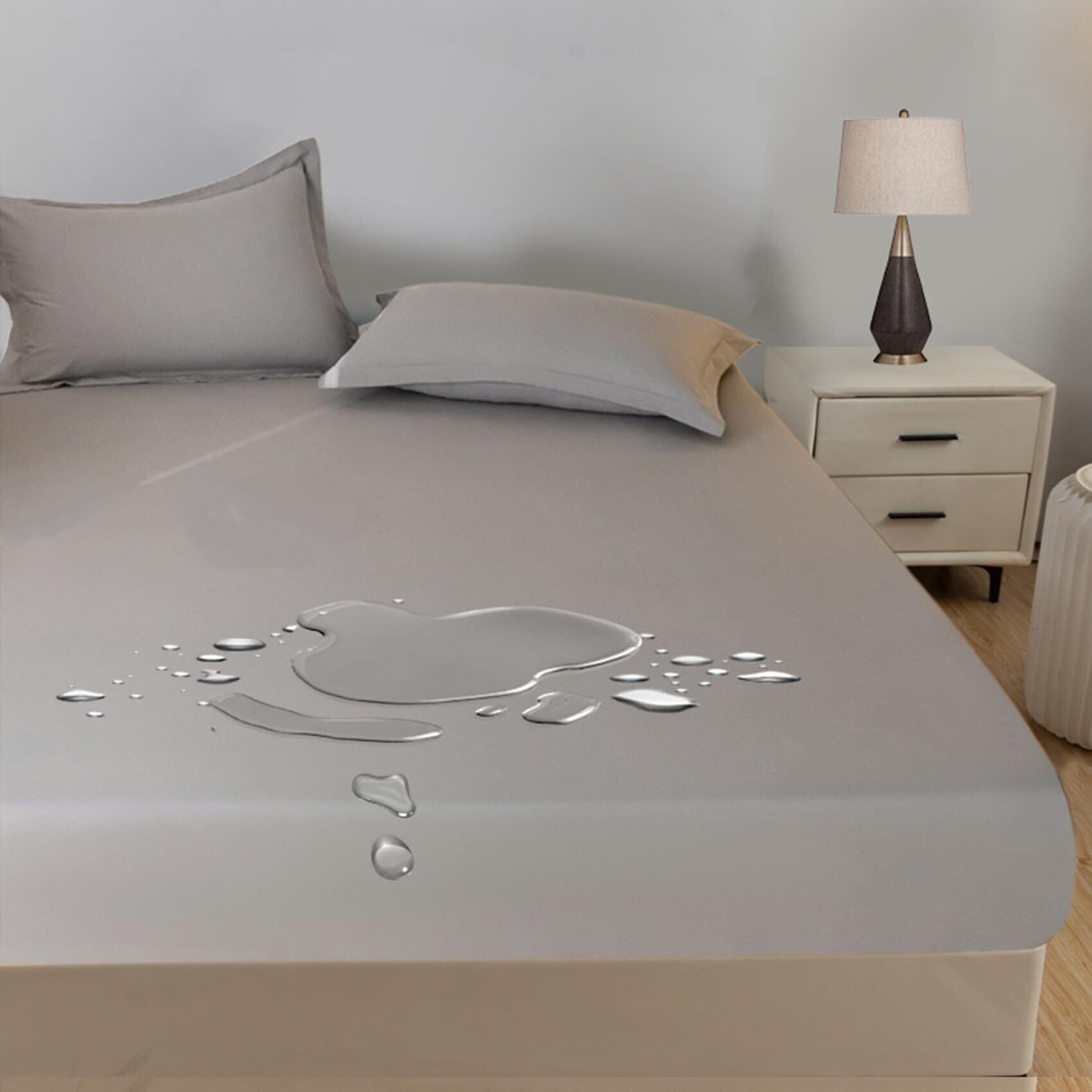 防水ボックスシーツ 五面防水 吸水速乾 敷きパッド マットレスカバー 柔らかな触感 赤ちゃん 大人用 おねしょシーツ 洗える オールシーズン(セミダブル·120X200*30cm ライトグレー)