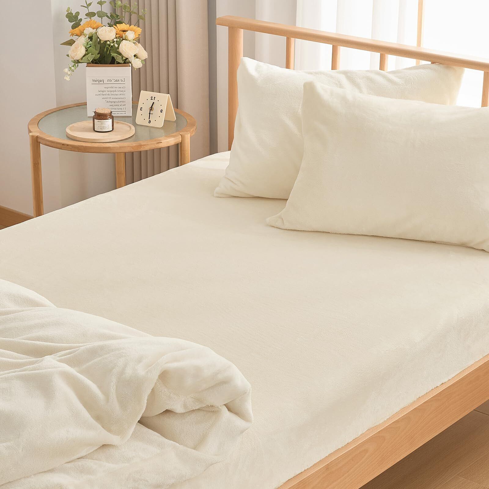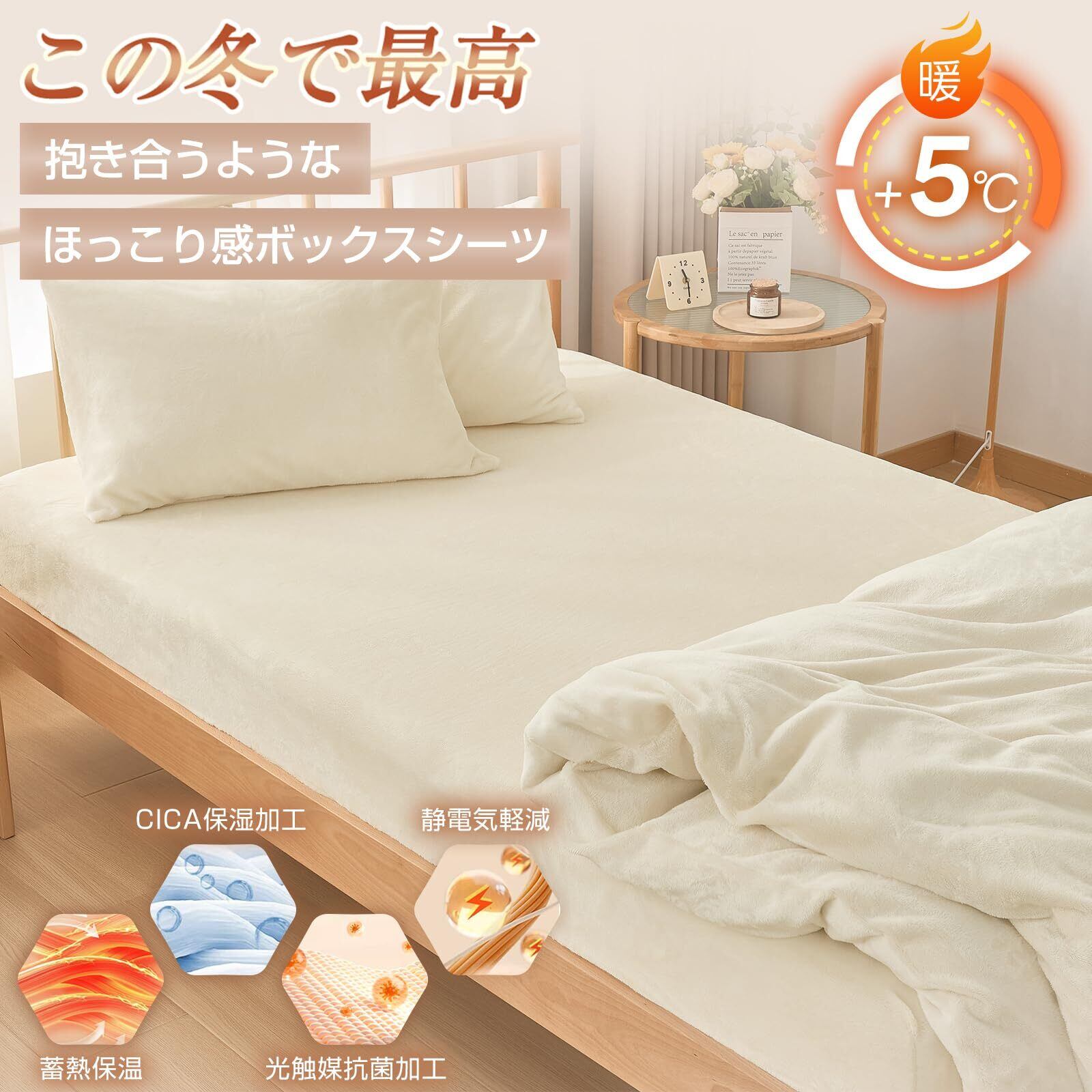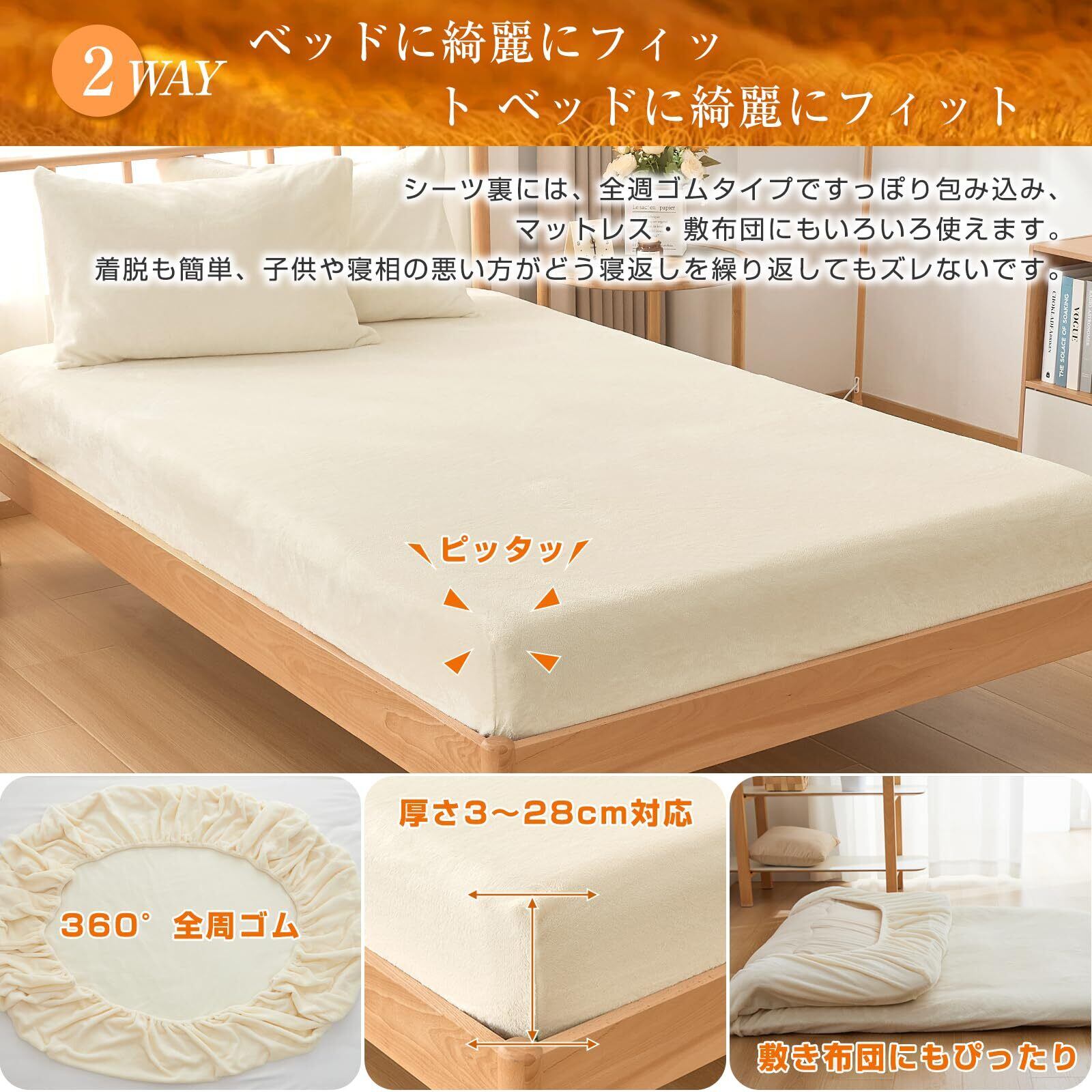fuwawa ボックスシーツ シングル 冬 ベッドシーツ フランネル 暖かい 厚手 『プラス5℃蓄熱保温』吸湿発熱 冬用 防寒対策 ベッドカバー【CICA保湿加工・防ダニ99.9%・エッコテックス認定】抗菌防臭加工 全周ゴム付き 静電気防止 丸洗いOK 着脱簡単 マットレスカバー あったかシーツ 敷ふとん兼用 マチ部分約30cm(シングル・100×200cm アイボリー)