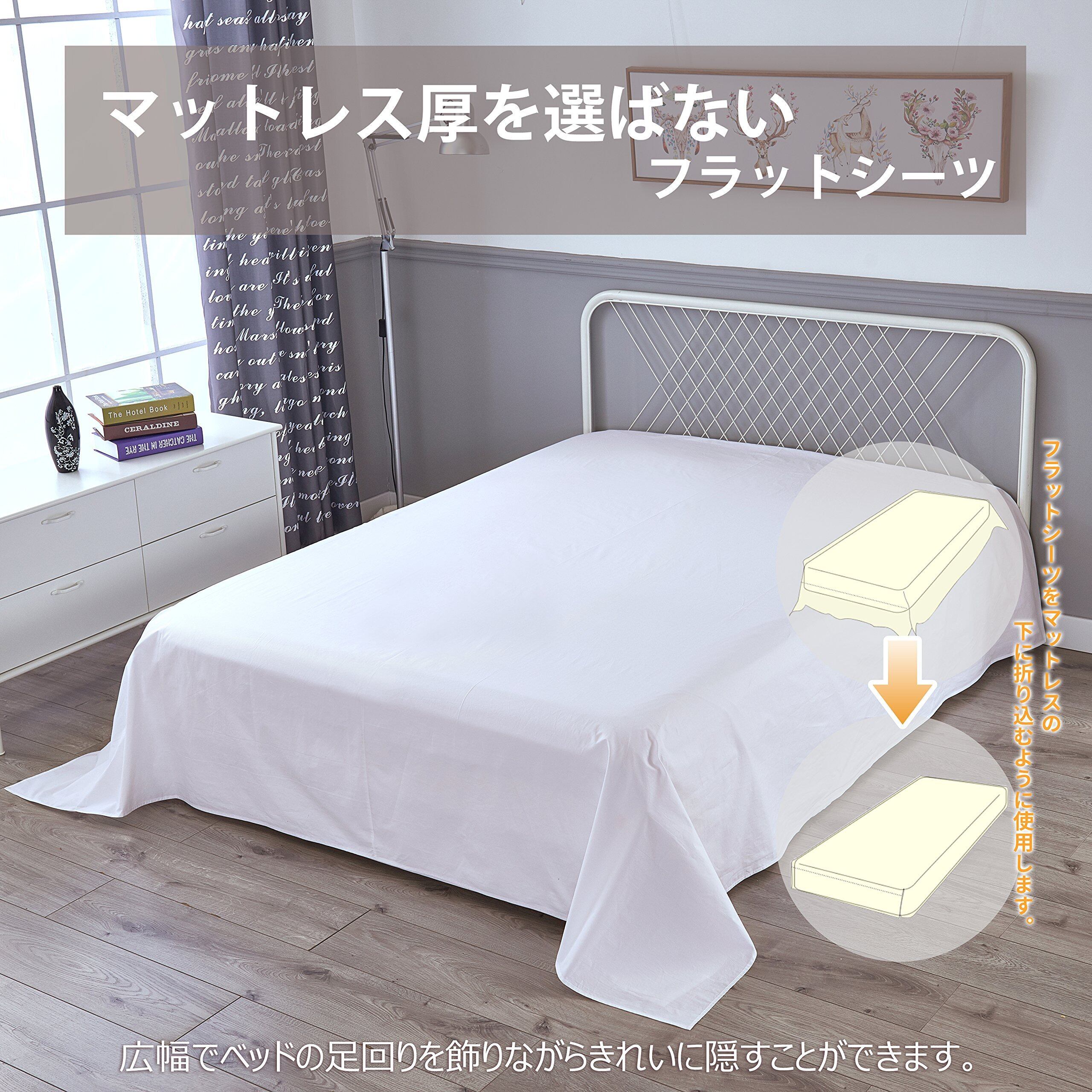 敷きシーツ セミダブル フラットシーツ180x240cm 綿100% ベッドシーツ 200本ブロード マットレスカバー 防ダニ 抗菌 無地 ホワイト