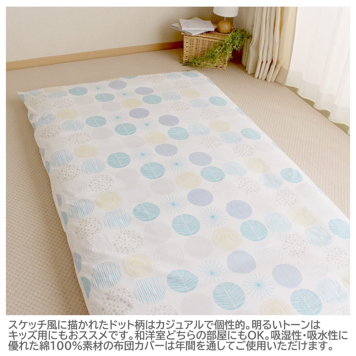 メリーナイト 敷き布団カバー 「ナチュラルドット」 ブルー シングルロング 約105×215cm 綿100%吸湿性 通気性 心地よい肌触り オールシーズン 洗える CT13114-76