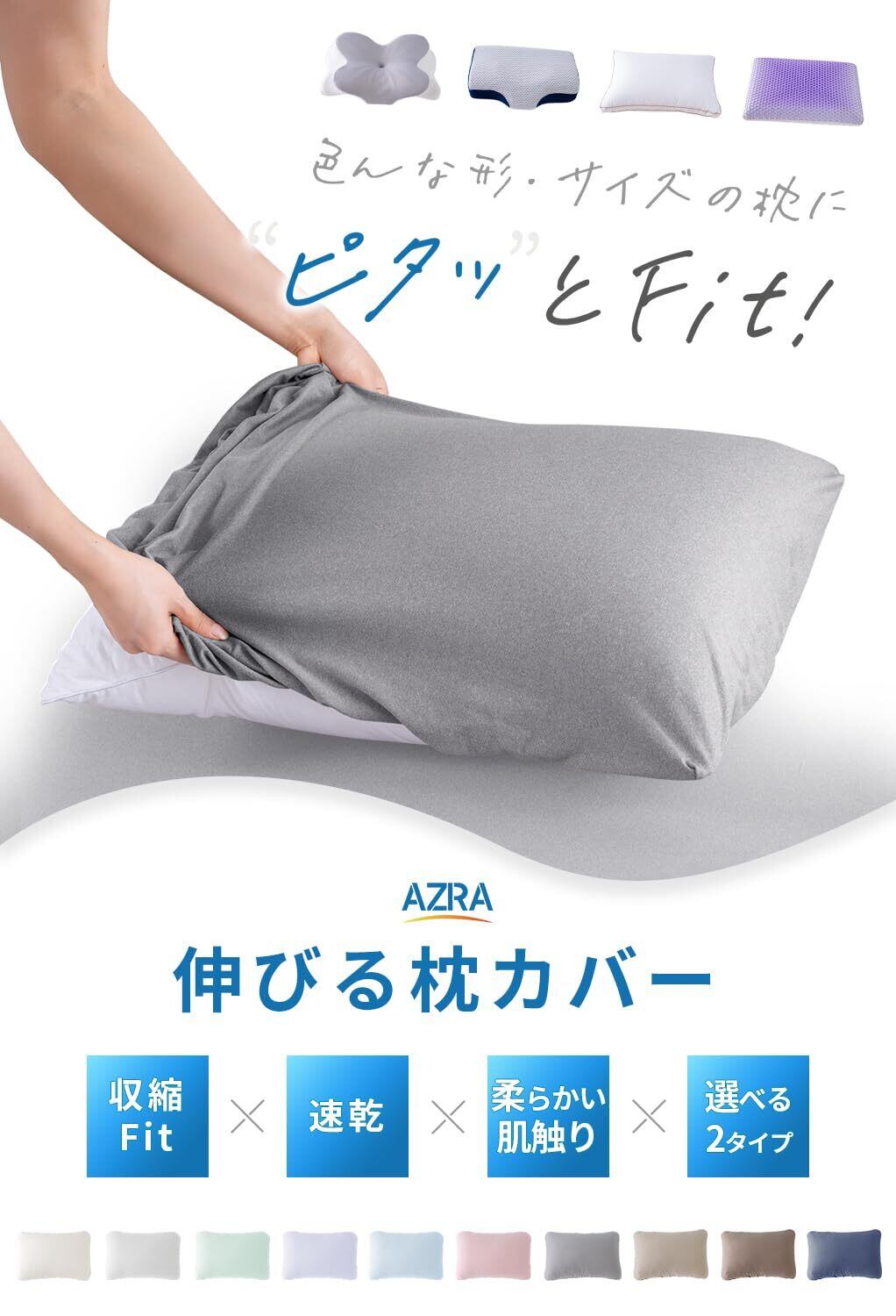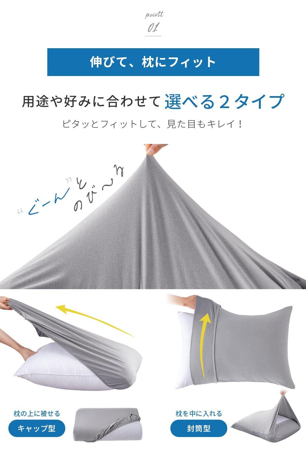 「3Dストレッチでぴったりフィット」枕カバーは、ポリエステル93%・スパンデックス7%の柔らかな素材で仕立てました(40×60cm)。3Dストレッチ素材だから、伸びがいい、いろいろなサイズの大きめな枕(50x70cm)にふんわりフィット。心地よい眠りをサポートします。