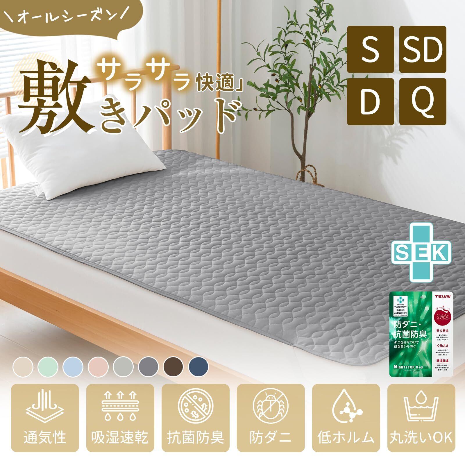 【お肌が喜ぶやさしい心地】肌に優しい表地は通気性がよく、汗をかいても水分が素早く吸収し、すぐに乾きます。汗をかきやすい夏も快適な使い心地。吸水性と通気性に優れた素材のため、敷きパッドは汗などの水分をたっぷり吸収し、速乾してさらっと快適にお使いいただけます。蒸し暑い夏や、季節の変わり目に活躍します。