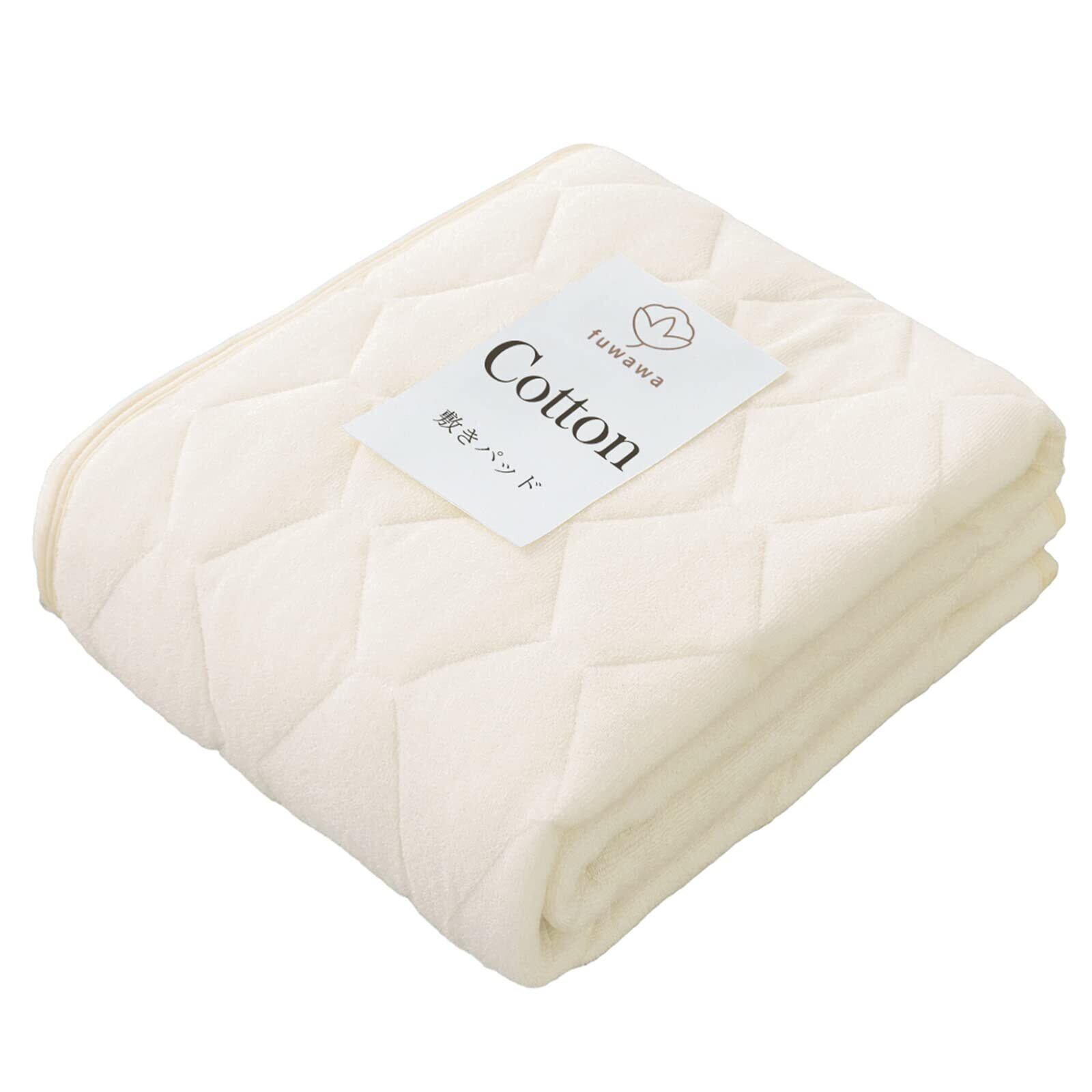 fuwawa 敷きパッド シングル 綿100% タオル地 オールシーズン【帝人マイティトップII中綿使用】ベッドパッド パイル地 さらさら 吸湿速乾 抗菌防臭 防ダニ 四隅に強化ゴム付き マットレスパッド 洗える 100x200cm 無地 アイボリー