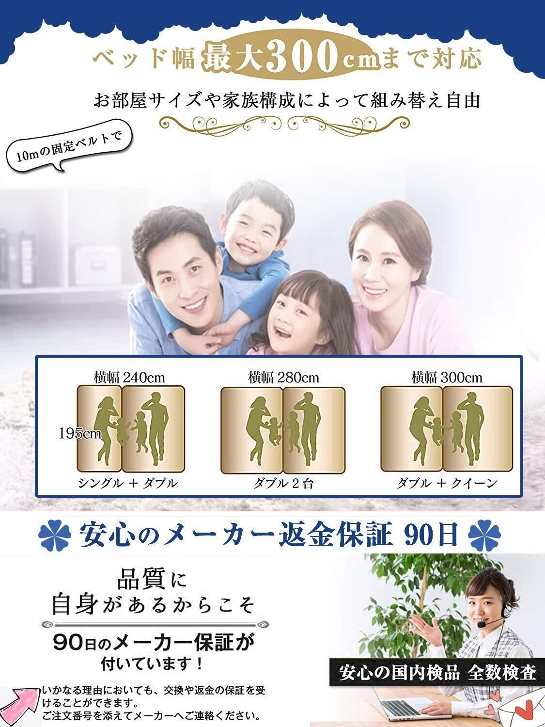 【10メートルの超ロングマットレスバンド】ダブルサイズのマットレス2枚分、またはダブル+クイーンサイズのマットレス2枚分にも対応できるため、大家族でも安心です。
