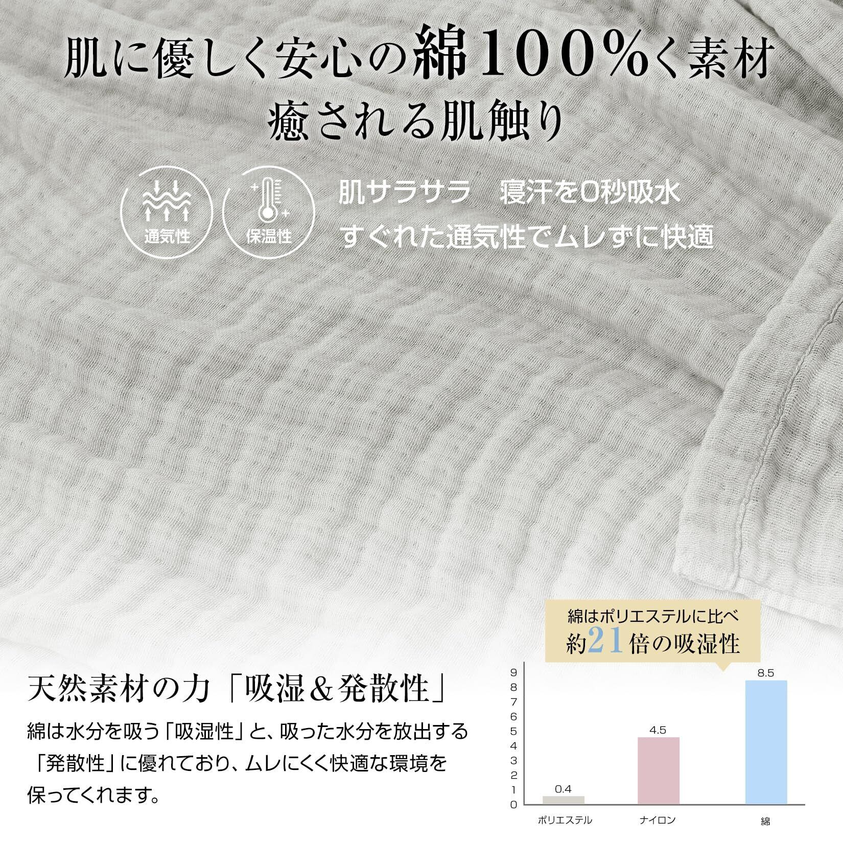 【優れた吸湿通気性·寝汗を0秒吸水】汗を素早く吸い取って放出して、嫌なべたつき感がなく、蒸し暑い夜でも快適に過ごせます。ちょうどよい厚みで、肌にフィットしやすく、「冷房対策」にも最適です。