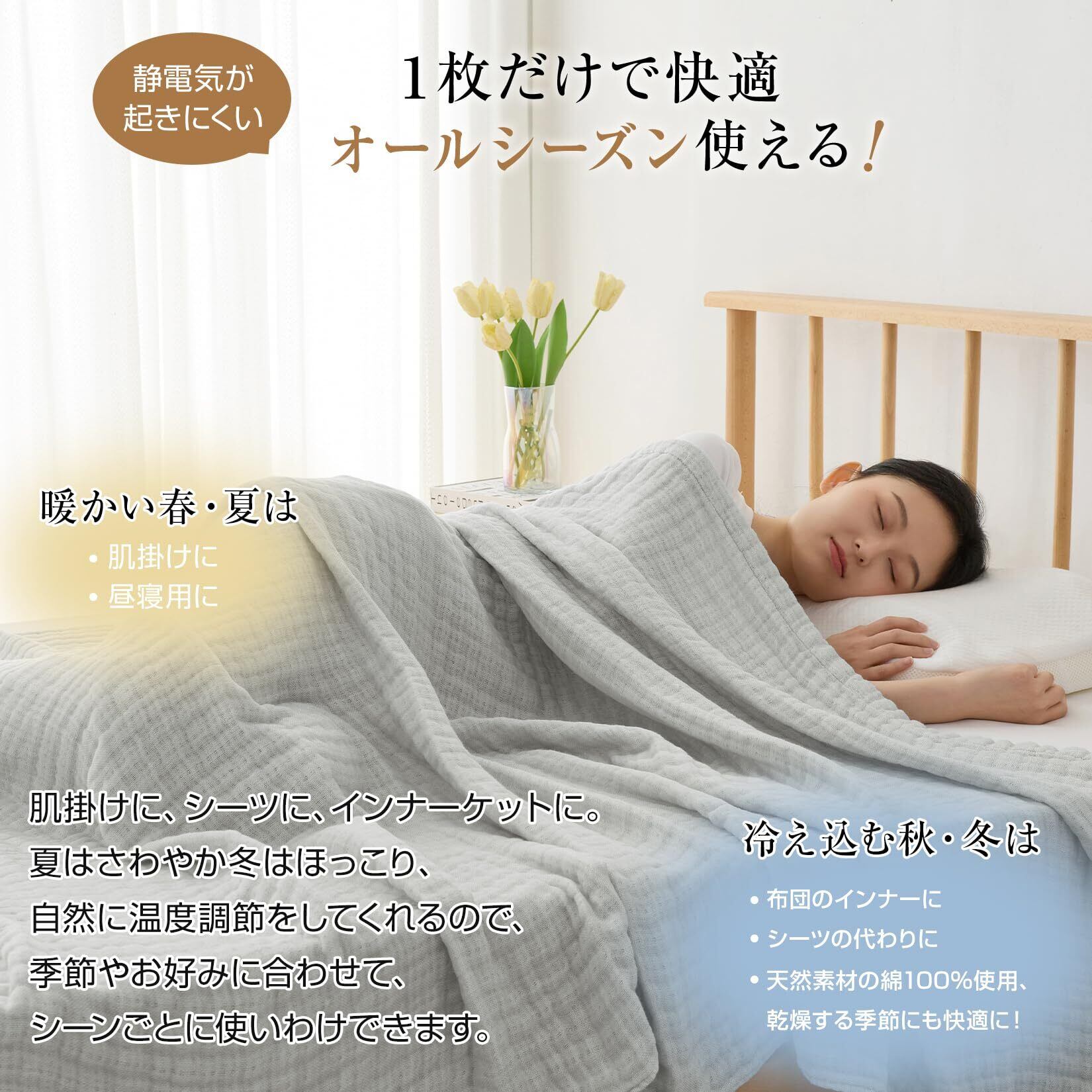 【オールシーズン使える】夏は通気性が良く、サラッとした肌触りに、冬は保温性を高めるので毛布がわりに、一年を通して快適にお過ごしいただけます。季節やお好みに合わせて、シーンごとに使いわけできます。